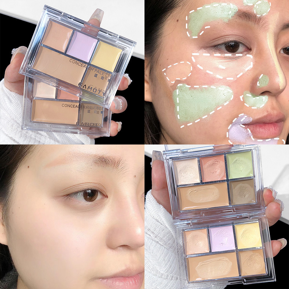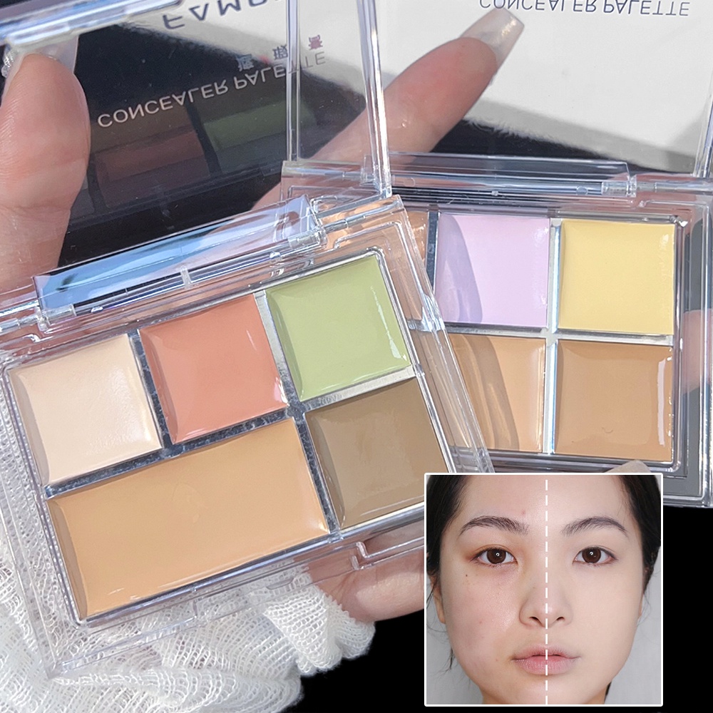 Face Concealer - Skin Color Corrector, Conceal & Brighten Dark Circles - 5 Colors Cream Palette - Full Natural Coverage, Long Lasting, Hydrating, Matte - Face Make up Cosmetic