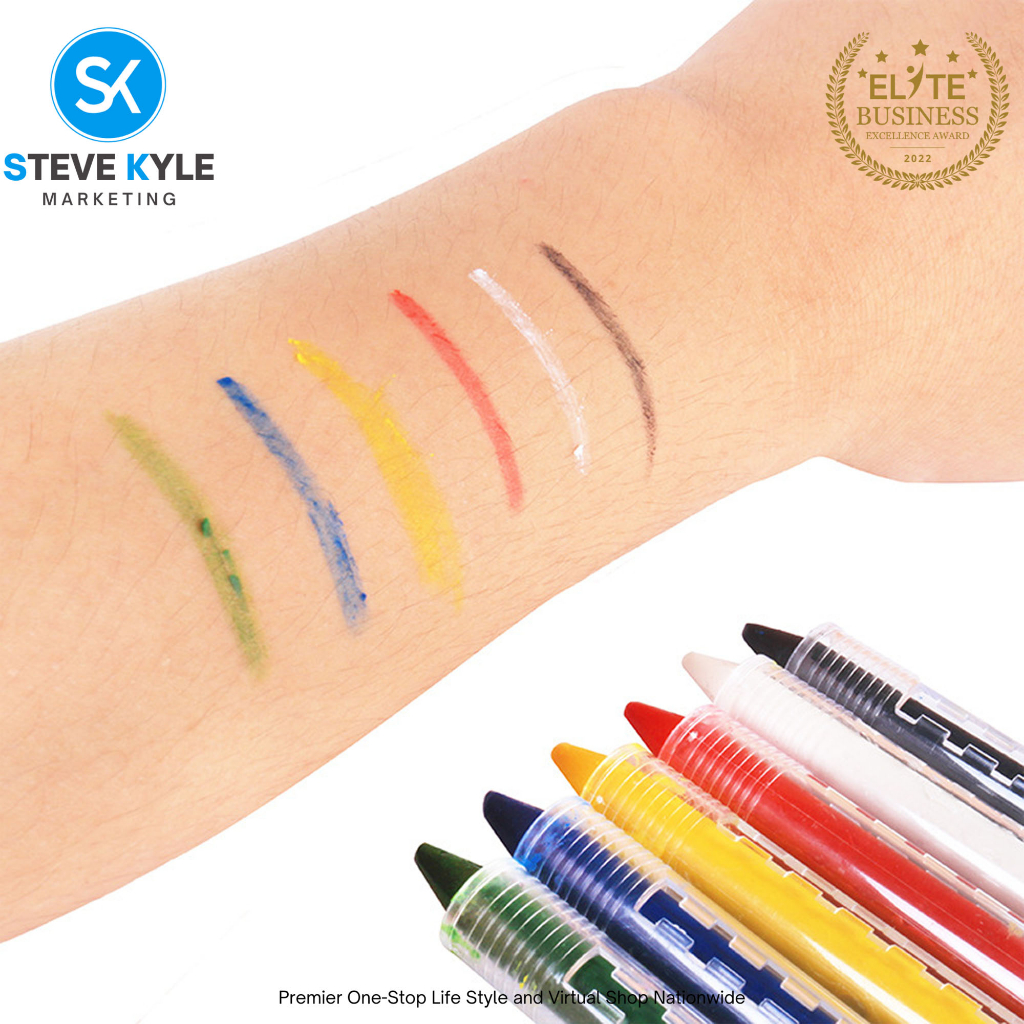 Face Paint Crayons Sticks Push-up Set 6 Colors Pens Costume for Halloween Cosplay or any Occasion
