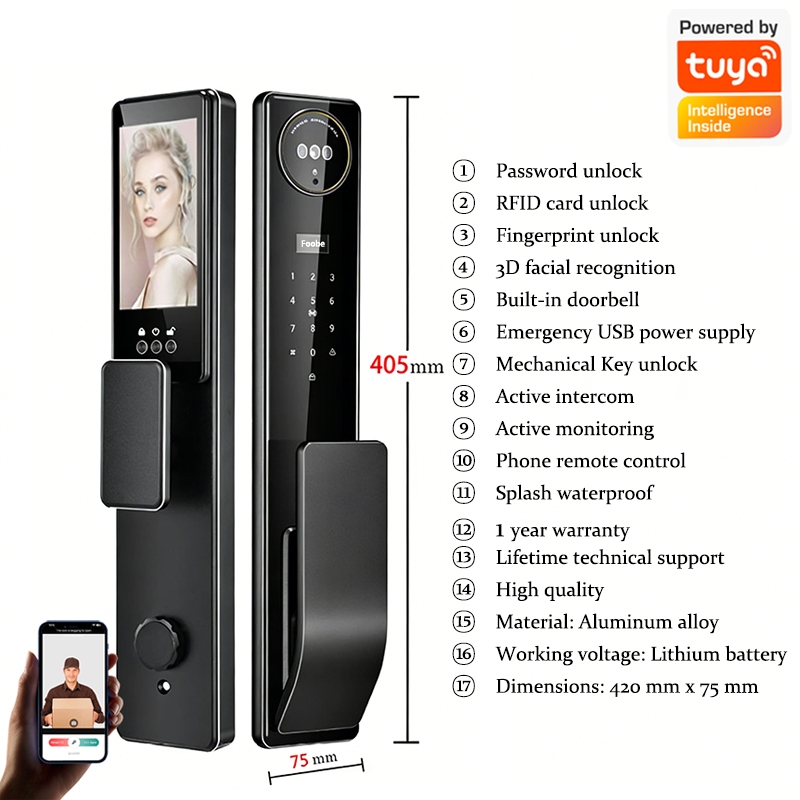 Face Recognition Smart Door Lock With Security Camera Password Face Unlock Automatic Main Door Lock