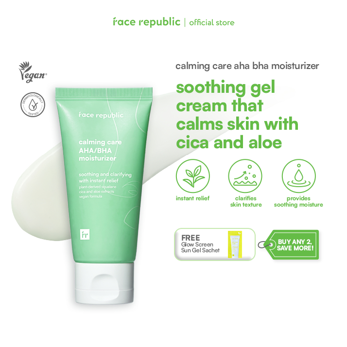 Face Republic Calming Care AHA/BHA Moisturizer 50mL, Non-comedogenic [Oily,Acne /CICA,Squalane]Vegan