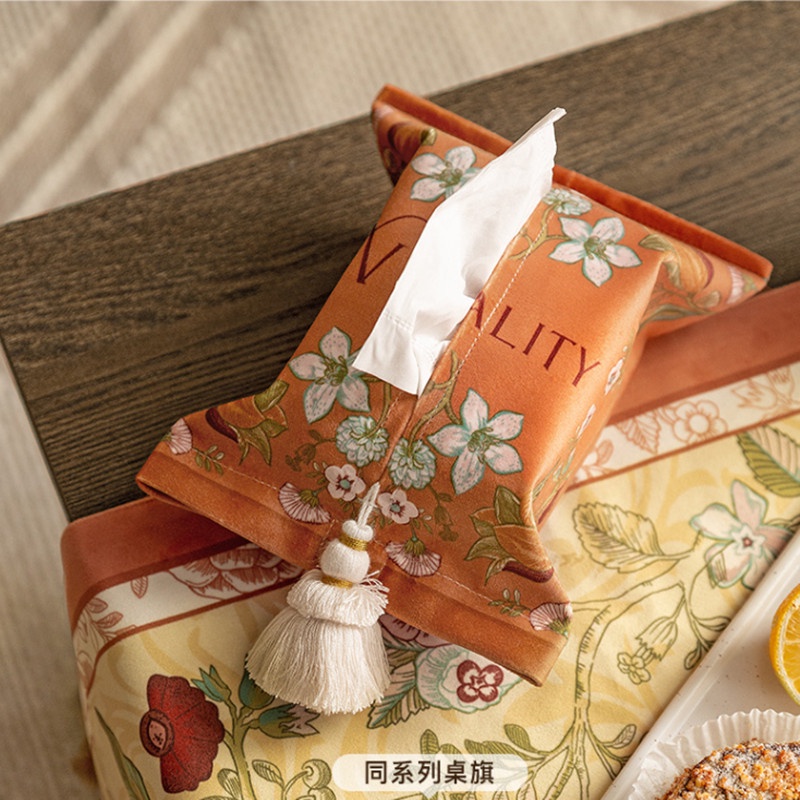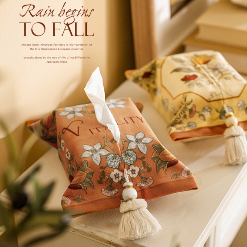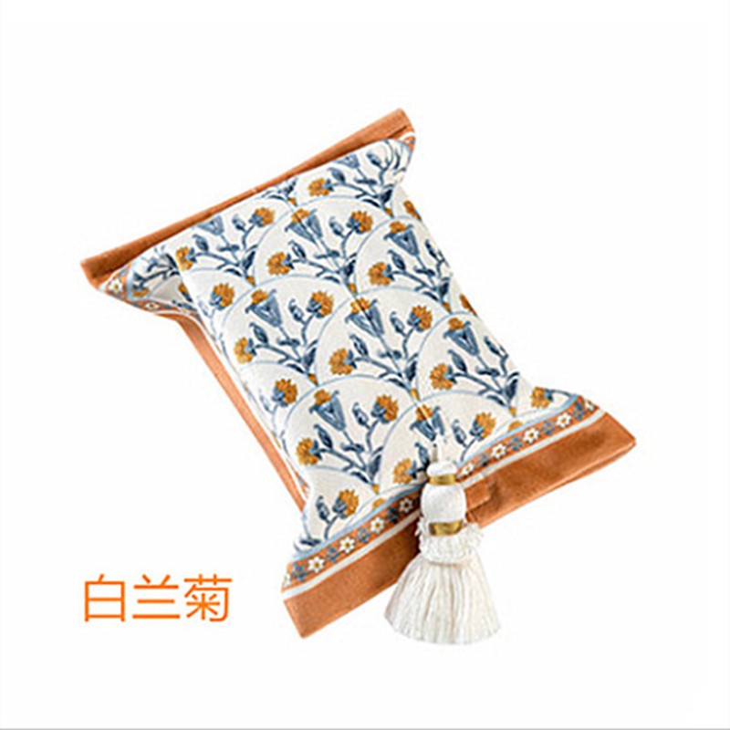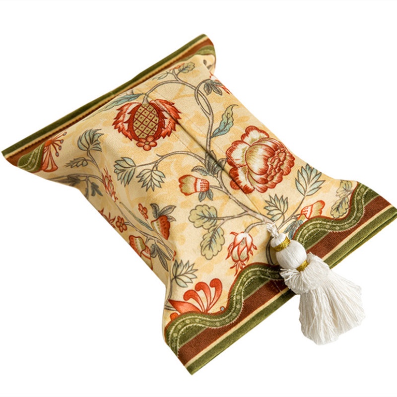 Facial Tissue Box Cover Rectangle Cotton Linen Tissue Paper Holder Flat Tissue Box Storage Bag for for Home