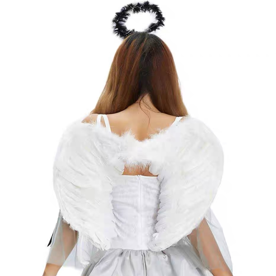 Fairy Angel Wing Costume Fancy Dress Up White , Feather Angel Wing Cosplay costumes