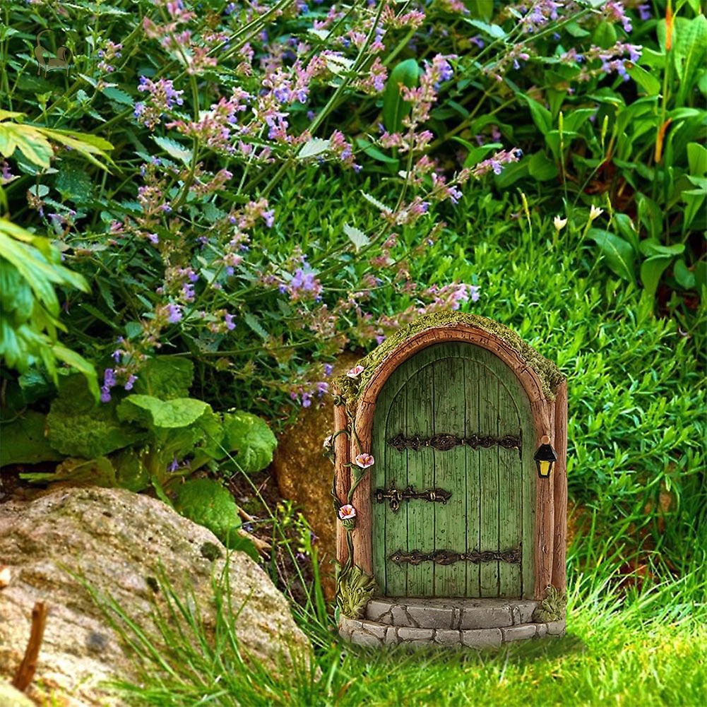 Fairy Garden Door Decor Wooden Fairytale Door Miniature Landscape Decoration Outdoor Garden Tree Decoration Mini Fairy Door Ornament Garden Decor