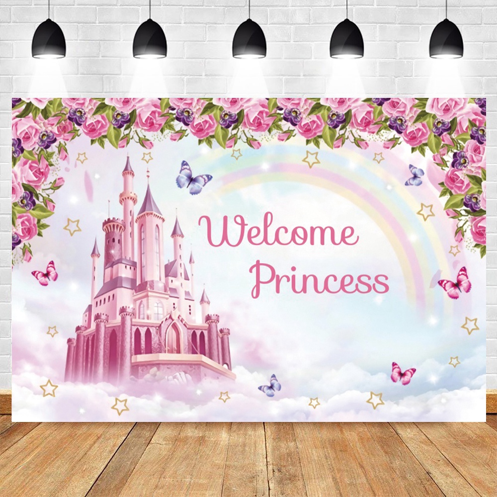 Fairy Tale Flower Wedding Party Backdrop Dreamy Princess Palace Castle Photography Backdrops Baby Shower Birthday