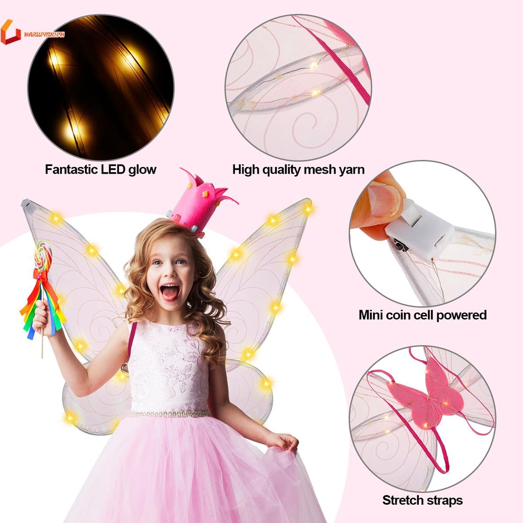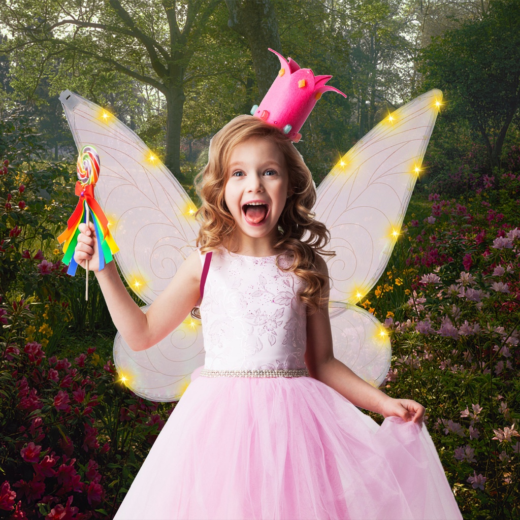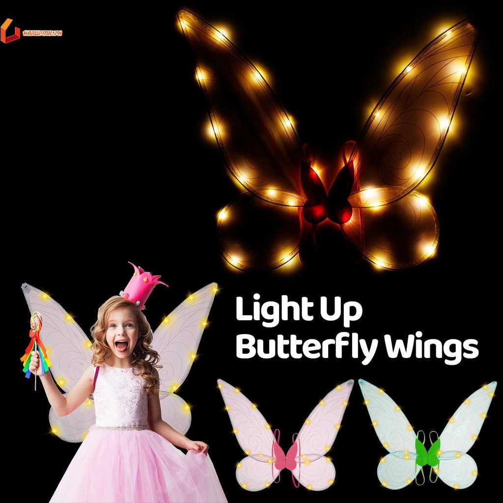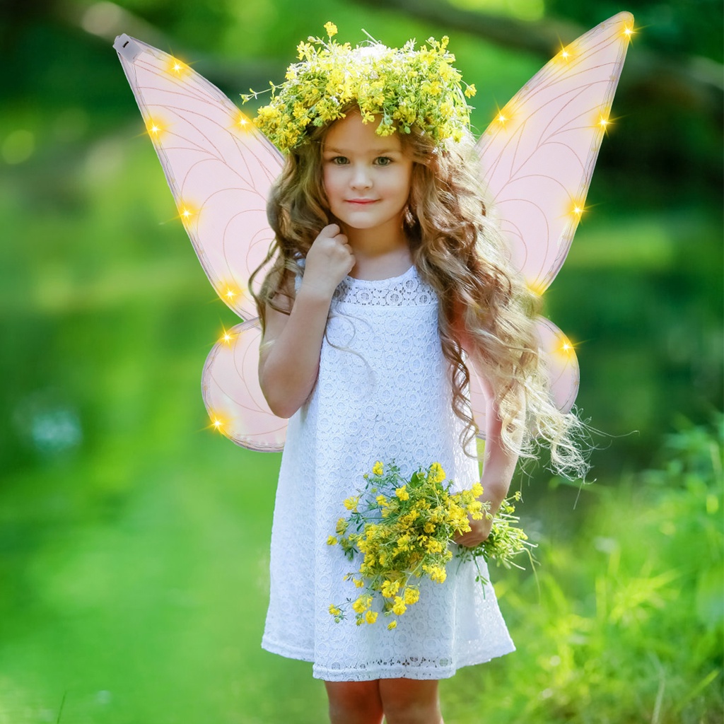 Fairy Wings with LED Sparkling Butterfly Wings for Girls Battery Powered Glowing Halloween Costume Wings for Adults
