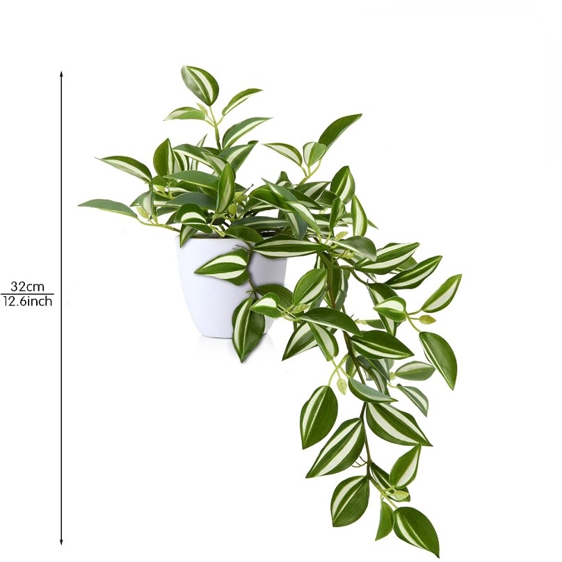 Fake Plants, Artificial Plants 15 Inch Faux Peperomia Watermelon Plants for Indoor Outdoor Decor,Realistic Artificial Hanging Plants in Pot for Home Office Perfect Housewarming Gif