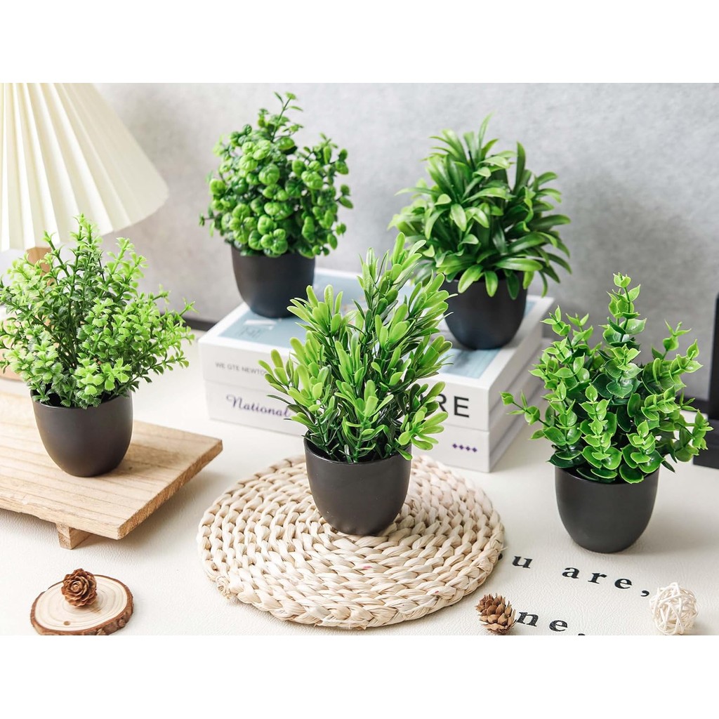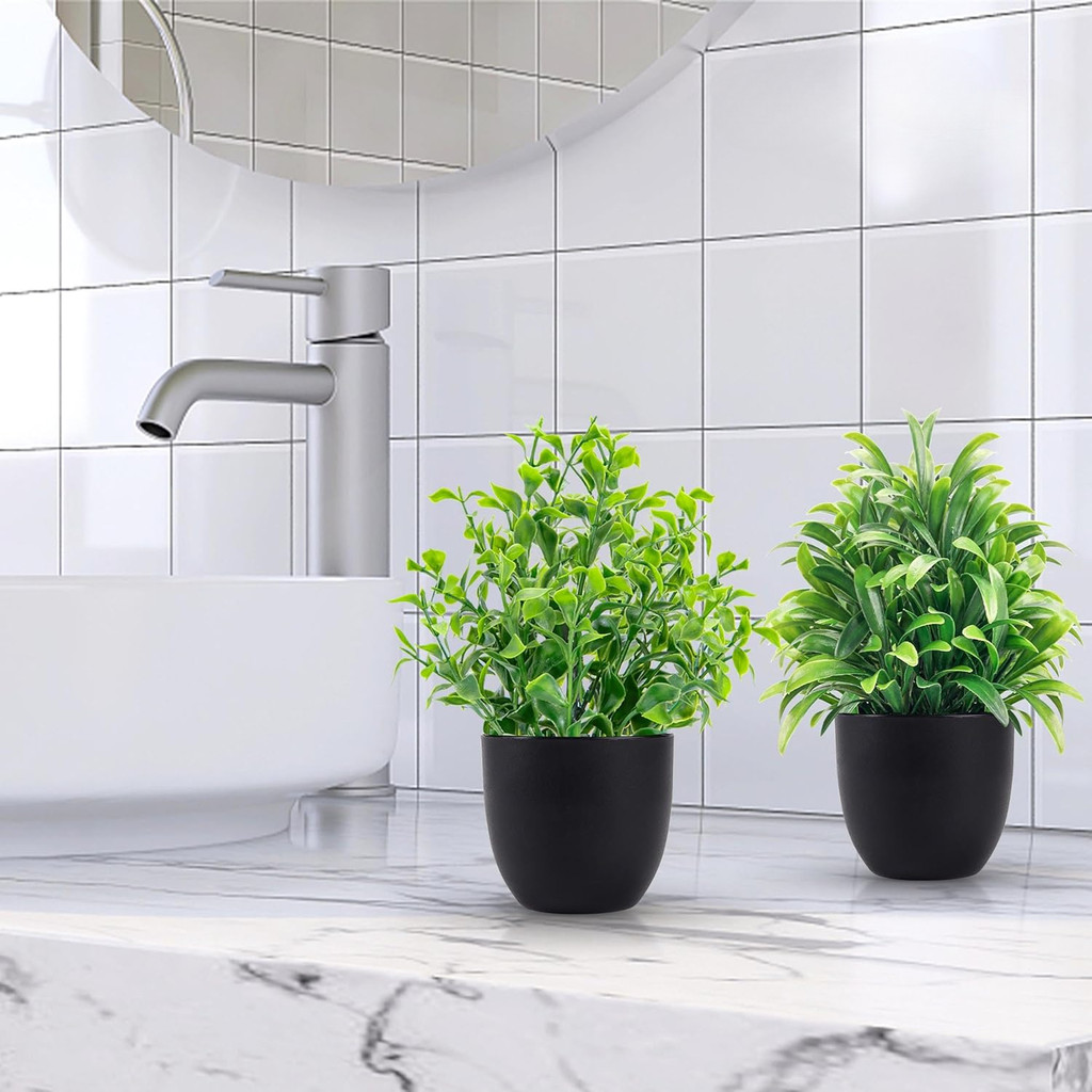 Fake Plants Artificial Plants Small Faux Plants in Black Pot for Bathroom Home Office Table Decor Indoor