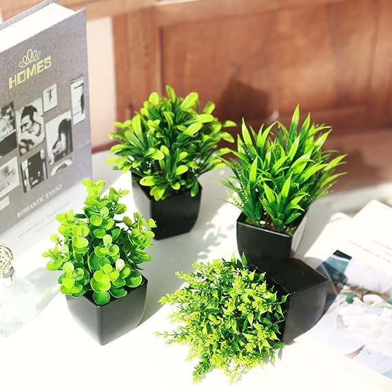 Fake Plants Small Artificial Potted Plants Faux Plants in Black Pots for Home Office Desk Bathroom Decor Indoor