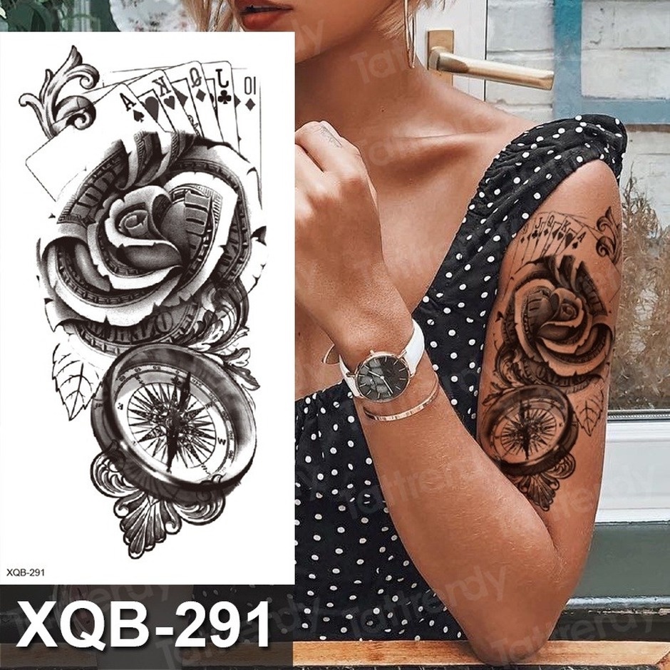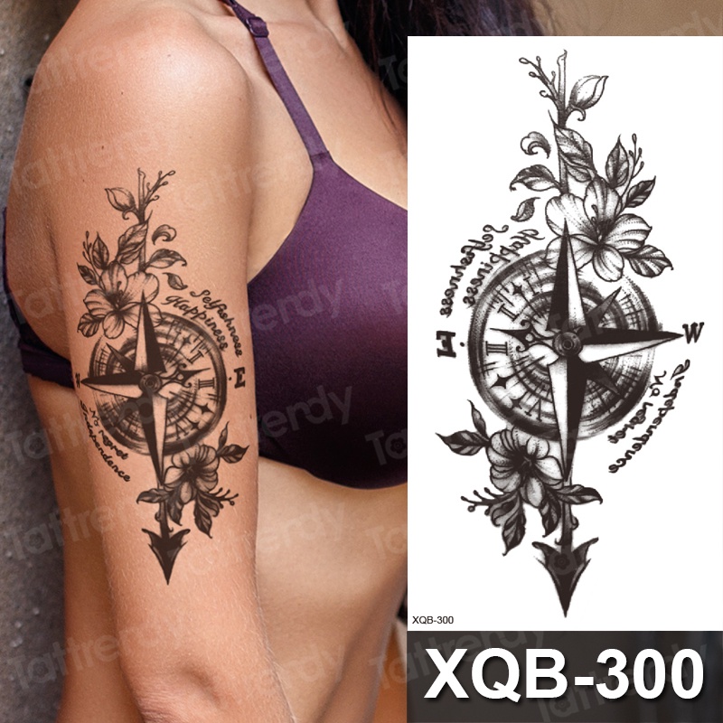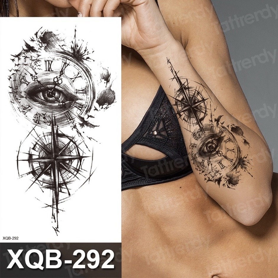 Fake Tattoo Sticker Black Compass Eye Tattoo Design for Men Women Hand Arm Band Tattoo Sleeve Waterproof Body Art Painting Special