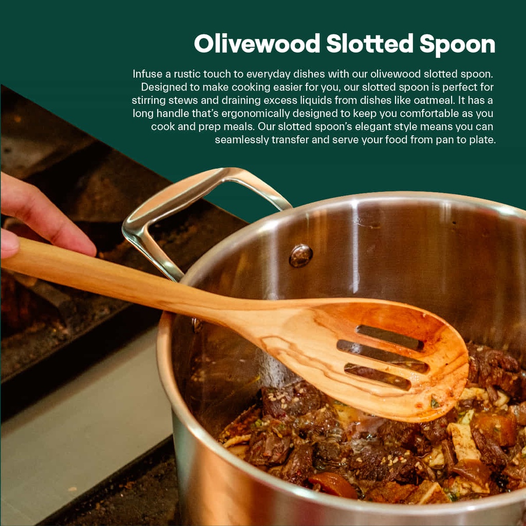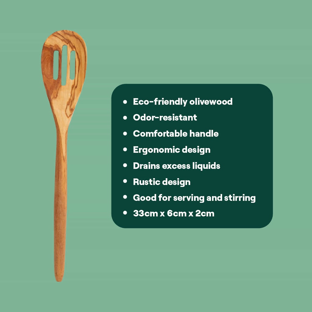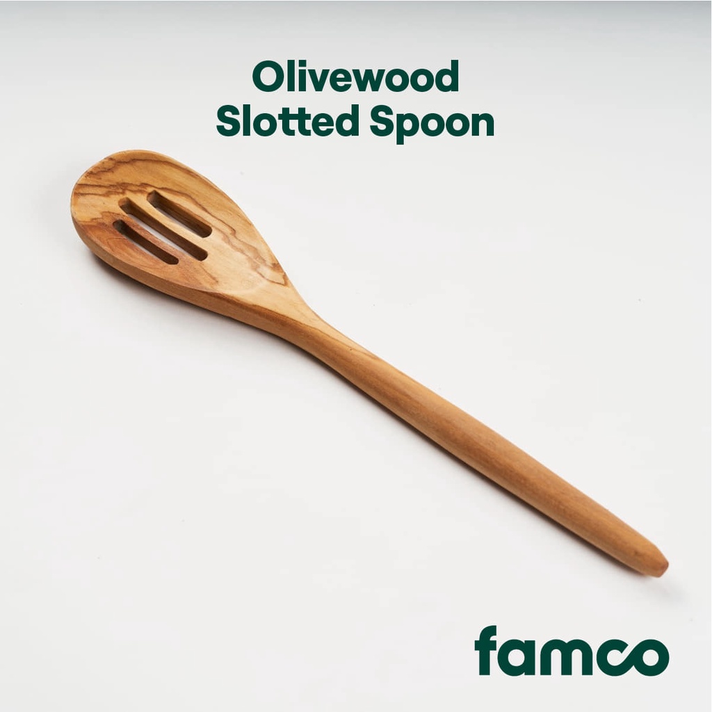 Famco Olivewood Slotted Spoon, Non-Scratch, Heat-Resistant, Natural Wood, Ergonomic Handle