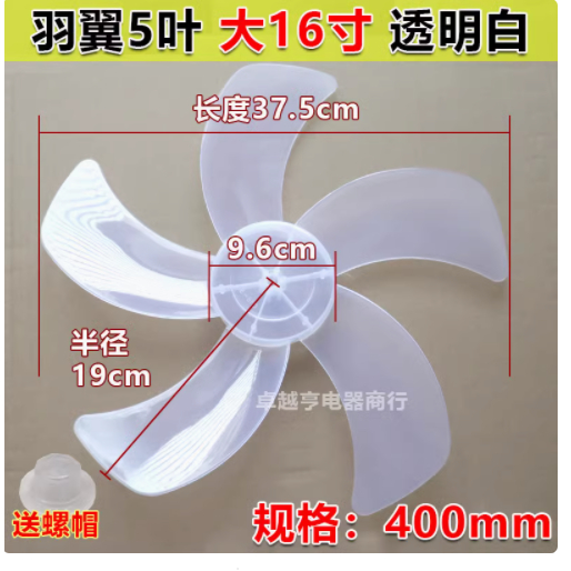 Fan Blade 12/14/16/18-Inch 5-Leaf 7-Leaf Mini Leaf Floor Fan Wind Blade Electric Fan Blade 4ftb16 Inch Plastic Fan Blade Five Leaves with Nut Cover (Fan blades only)