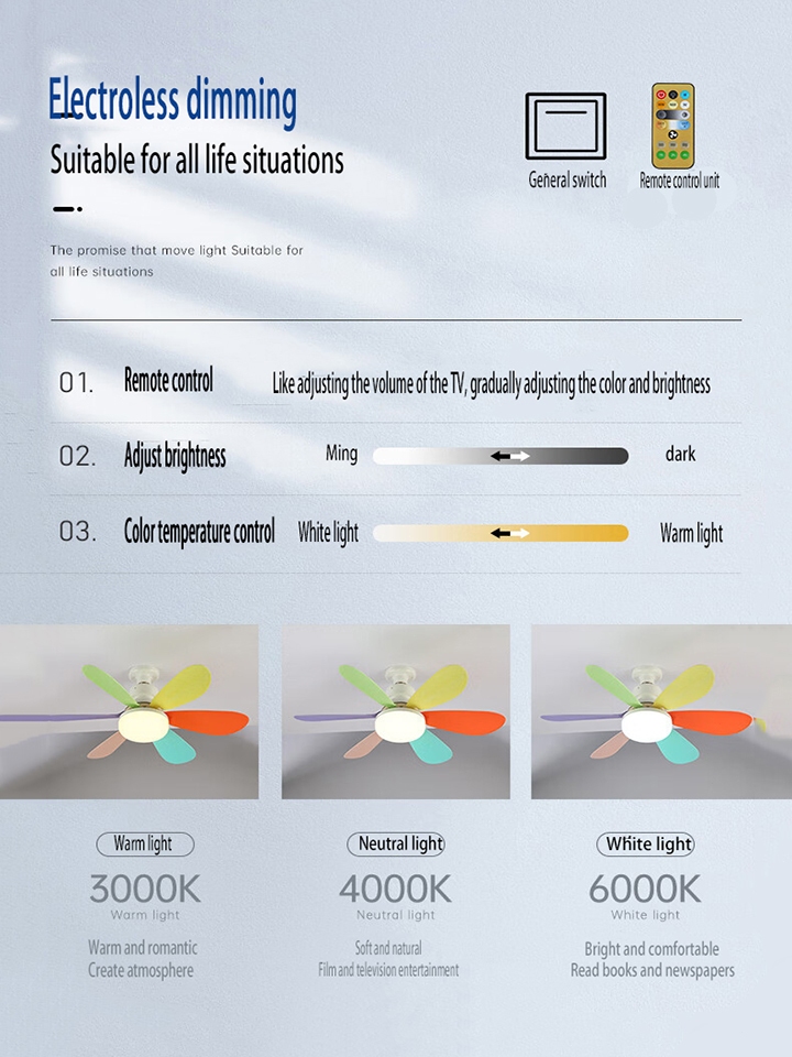 Fandis Ceiling Fan with Light E27 Remote Control Flower-sharped 16.5 Inch 30W Dimmable Cellin