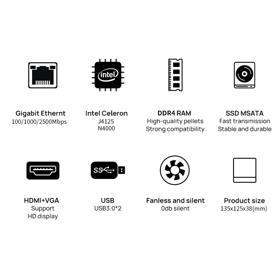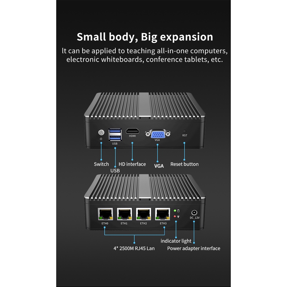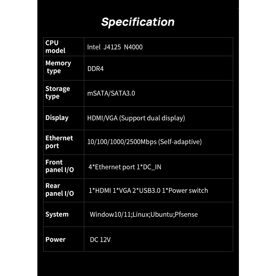 Fanless Soft Router Intel Celeron J4125 Mini PC Quad Core 4x Intel i225 2.5G LAN HDMI VGA pfSense Firewall Appliance ESXI AES-NI