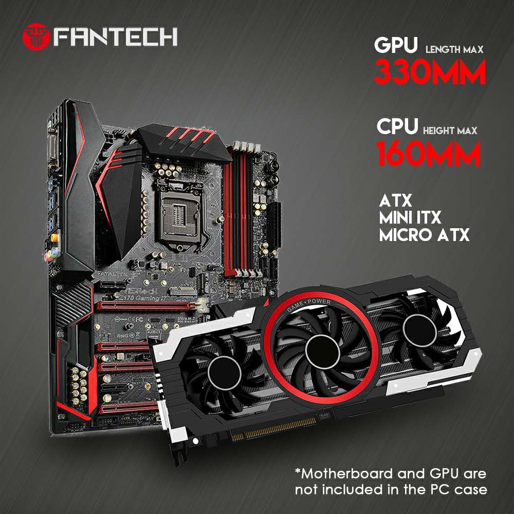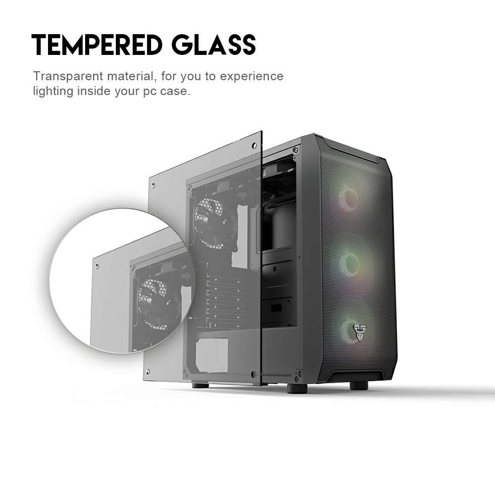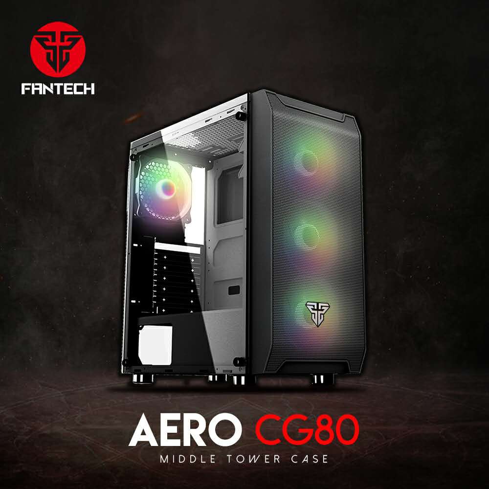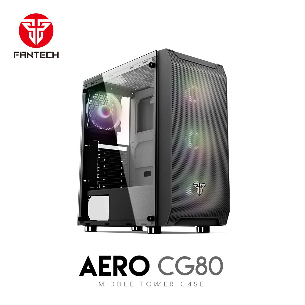 Fantech AERO CG80 RGB Gaming PC Case Mid Tower ATX Micro ATX Mini ITX Tempered Glass With 4 Fans