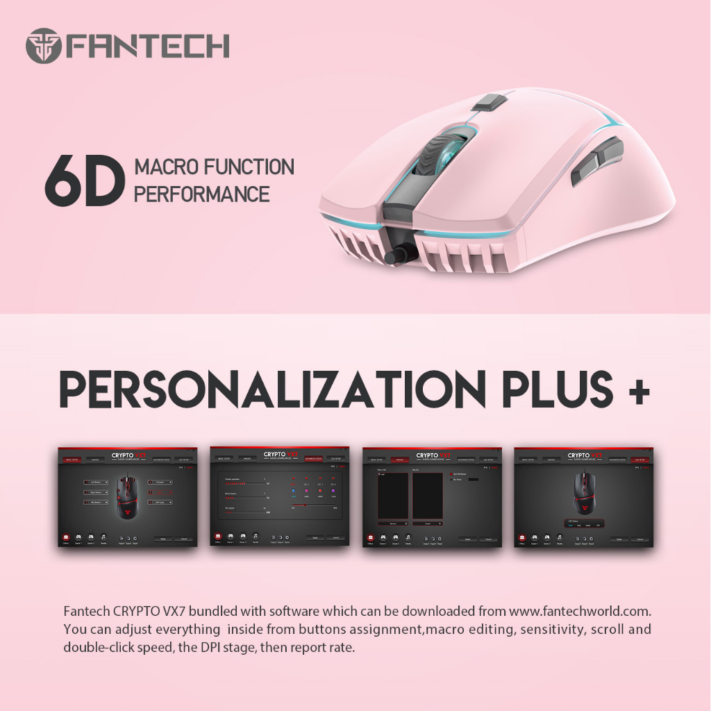 Fantech Crypto VX7 Macro Gaming Mouse 8000DPI 10M Clicks 60IPS Speed Optical Sakura