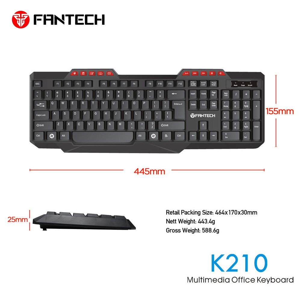 Fantech K210 Multimedia Office Keyboard Strong & Durable with Waterproof Splash Design