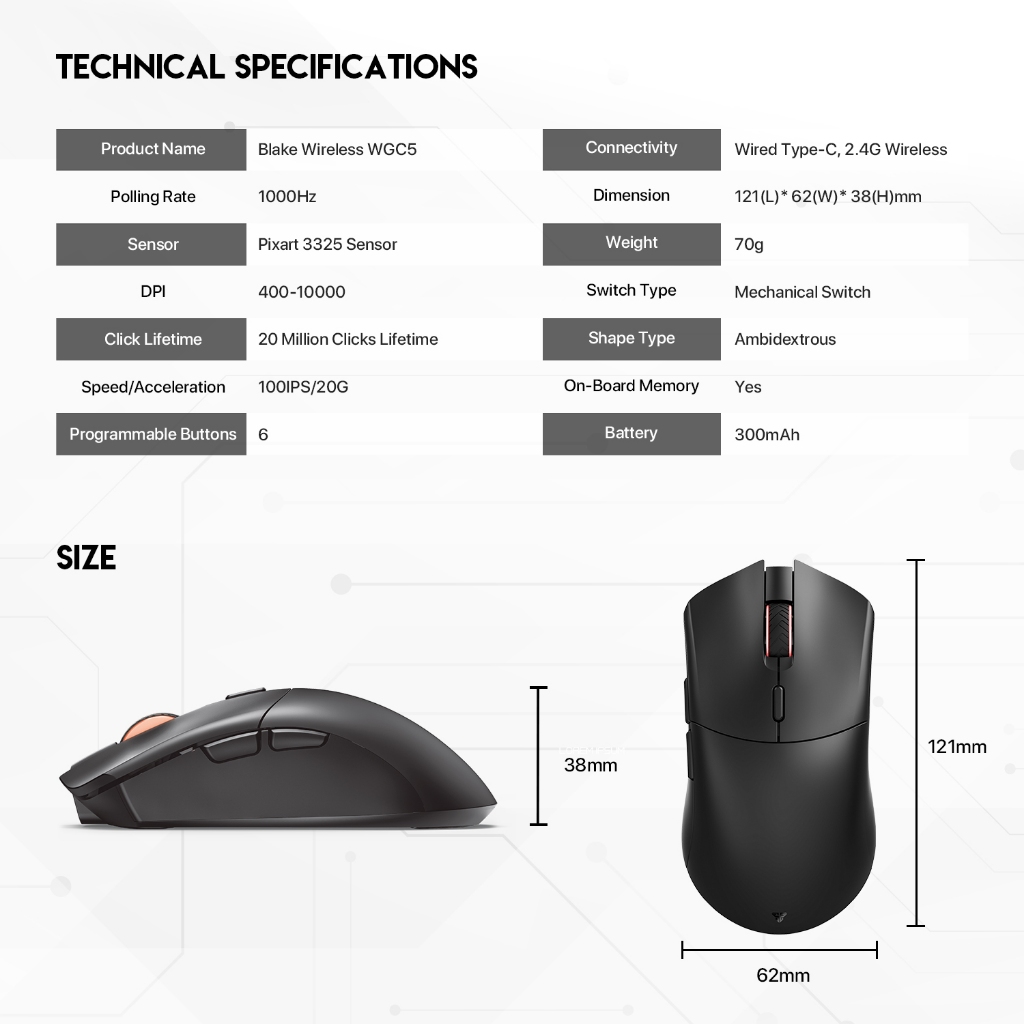Fantech WGC5 Blake Wireless Gaming Mouse Lightweight & Durable With 6D Macro Function