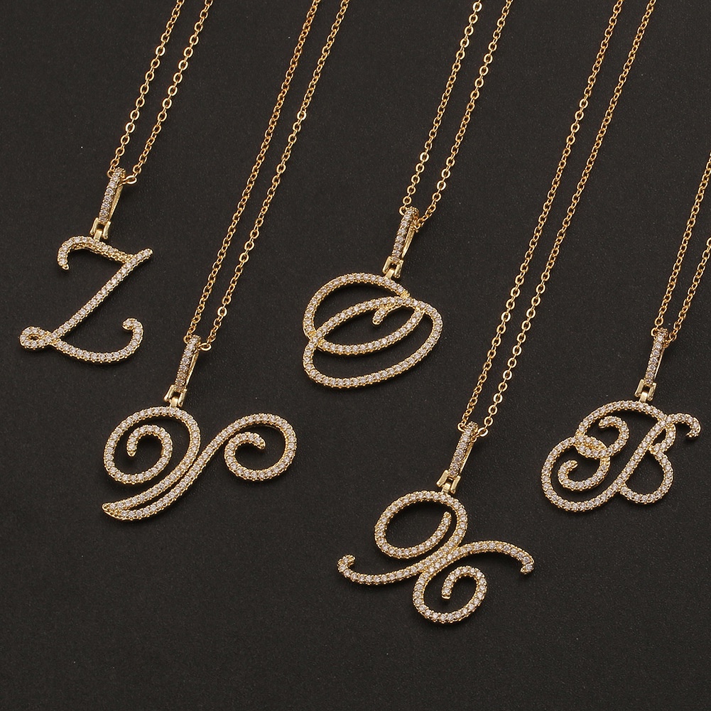 Fashion A-Z Initial Cursive Letters Pendant Necklace For Women Gold Color Shiny Rhinestone Chain Necklace Jewelry Gift