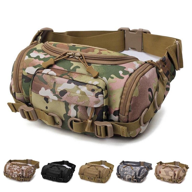 Fashion Camo Canvas Waist Bag Barrel Bucket Style Large Fanny Pack for Men and Women