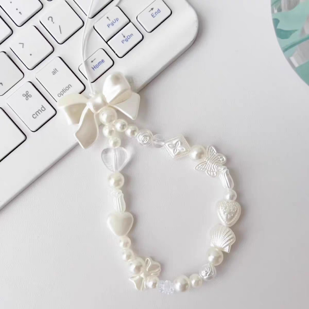 Fashion Chain Phone Universal Ins Love Heart Bow-knot Cartoon Cute Chain Phone Rope Strap Kpop Accessories Diverse Chain Beaded Bracelet Keychains Decoration Lanyard
