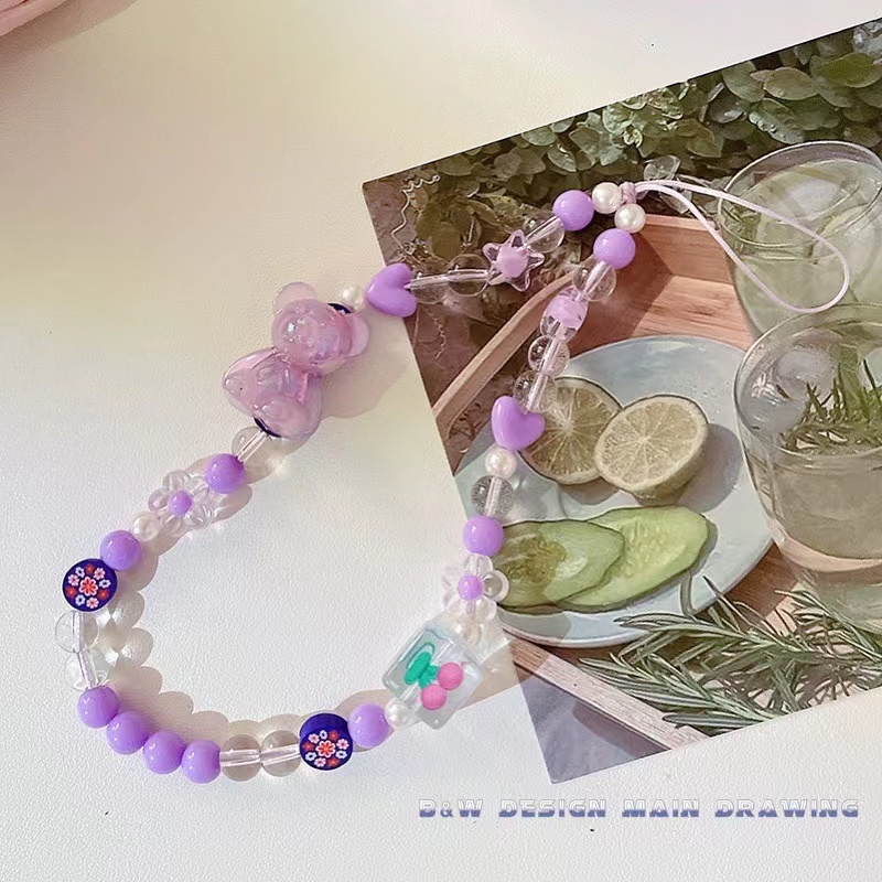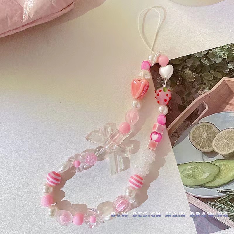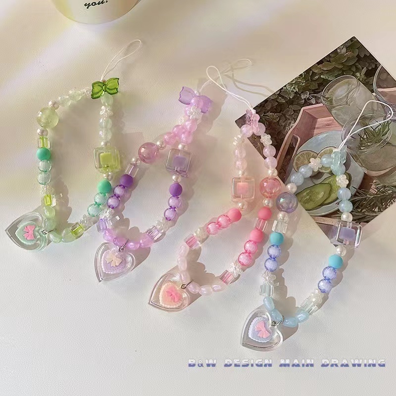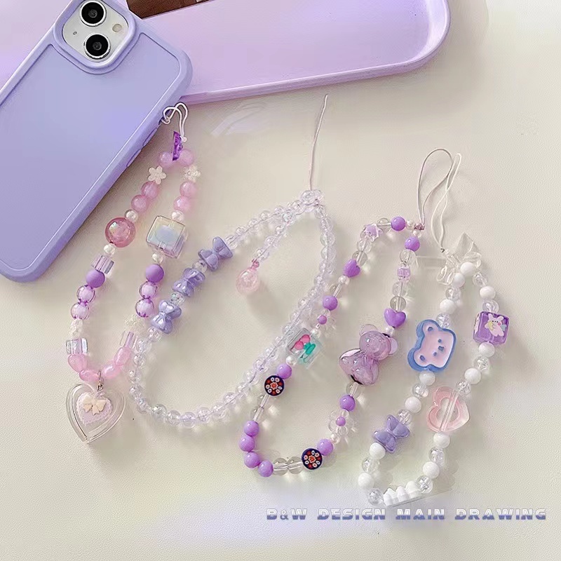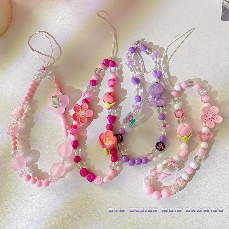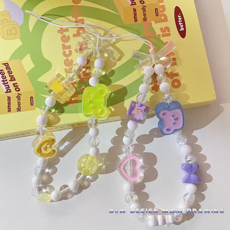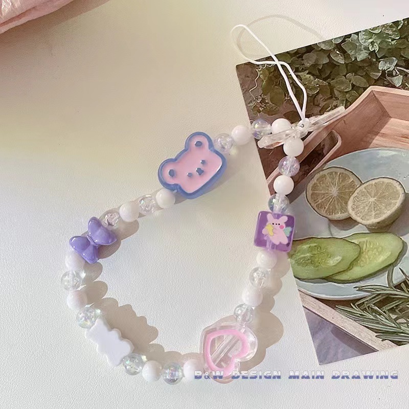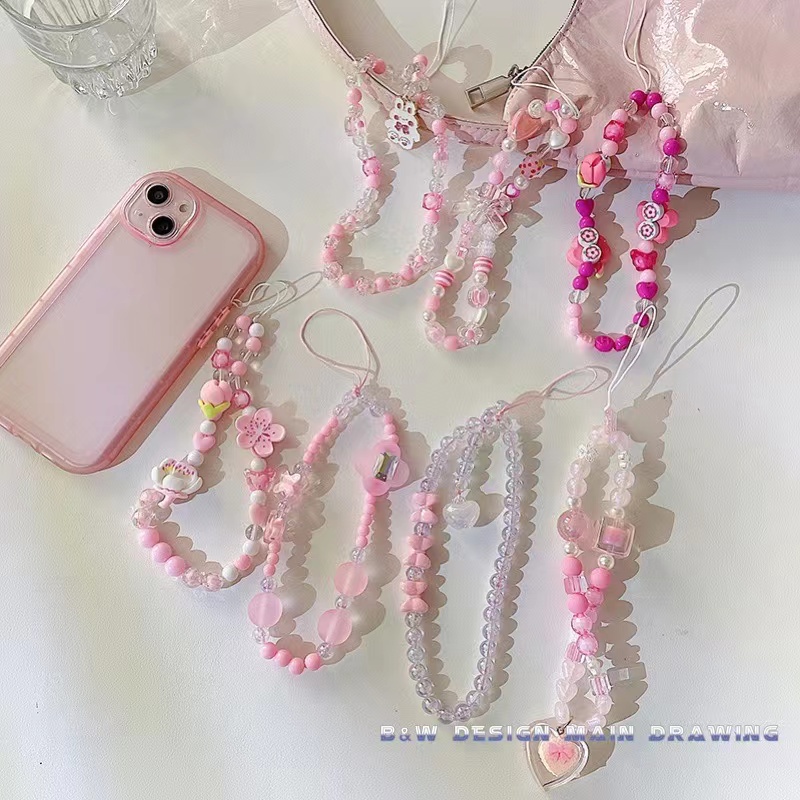 Fashion Chain Phone Universal ins cartoon color cute chain phone rope strap kpop accessories Diverse Chain Beaded Bracelet key chain ig decoration lanyard