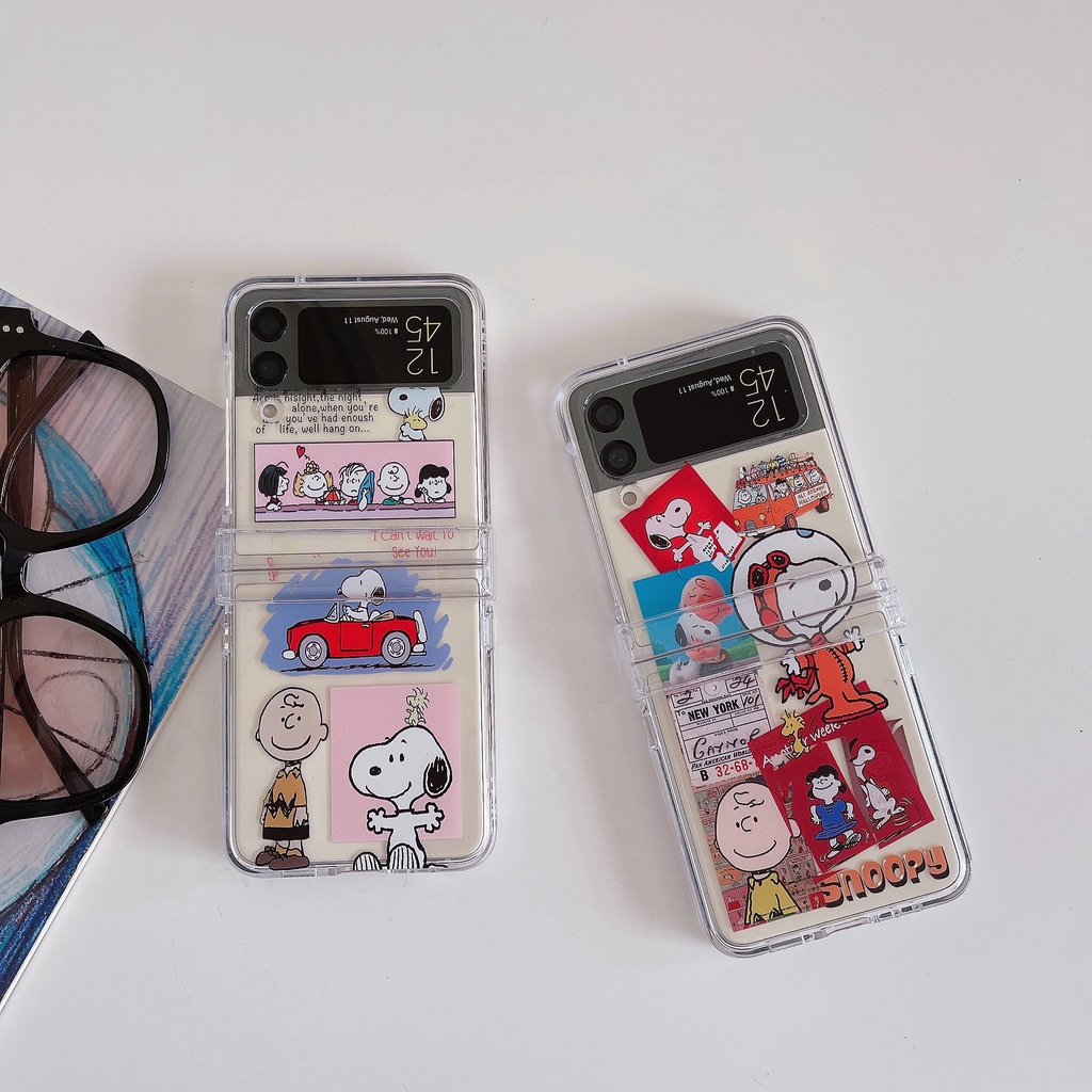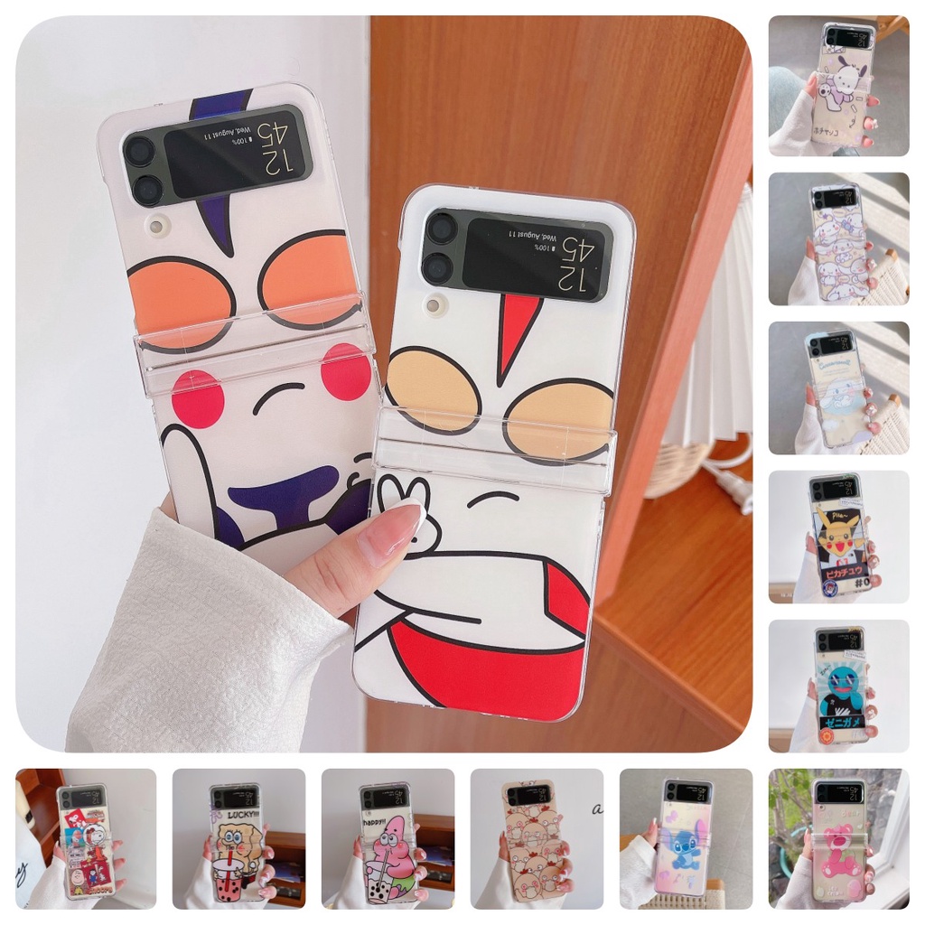 Fashion Cute Cartoon Transparent Phone Case For Samsung Galaxy Z Flip 3 5G Flip 4 Clear Protect Cover ZFlip3 Flip4 3 in 1