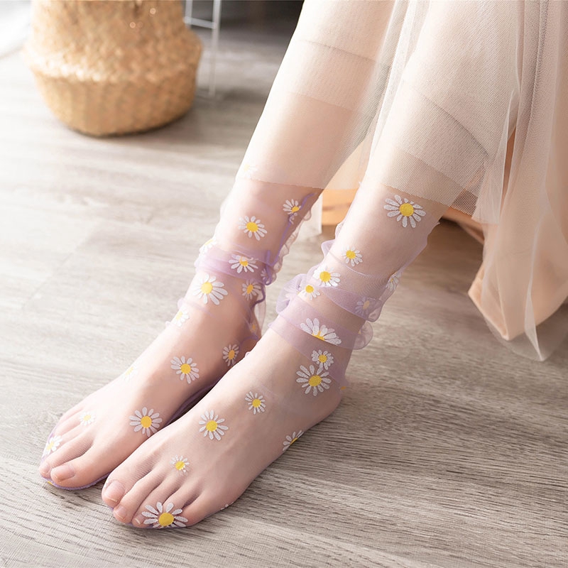 Fashion Daisy Mesh Tulle Socks Women Transparent Thin Lace Sheer Socks