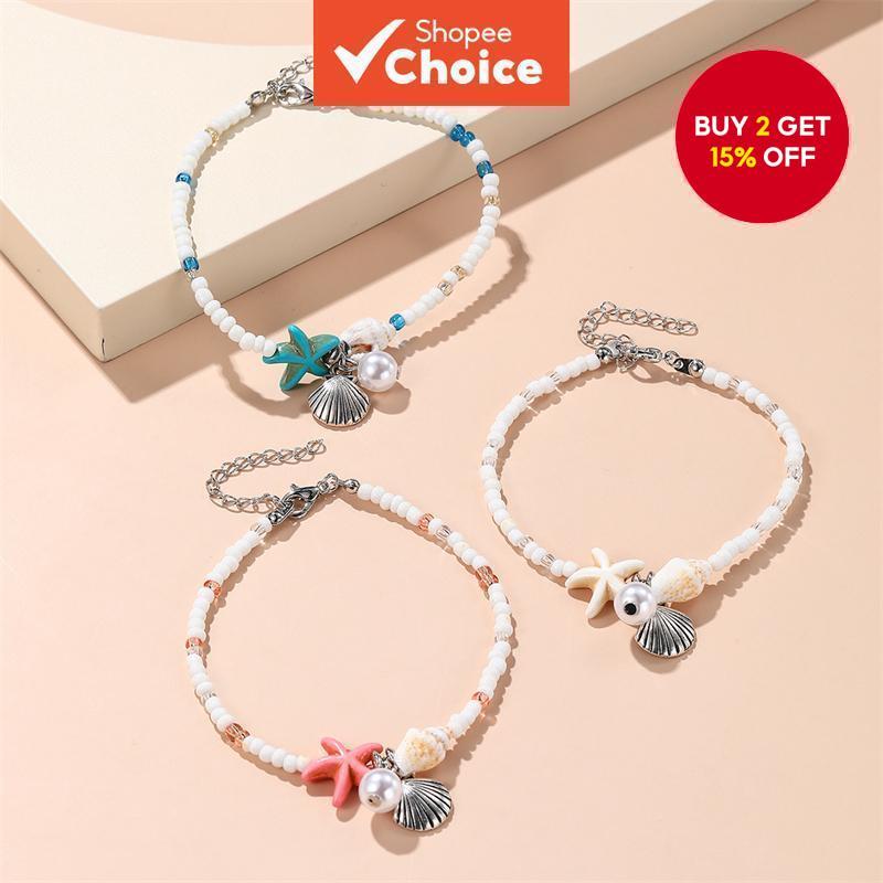 Handmade Boho Shell Conch Starfish Charm Beaded Bracelet Beach Jewelry Gifts for Women
