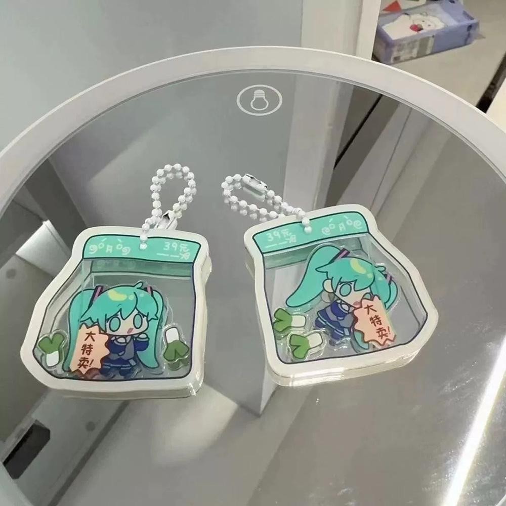 Fashion Hatsune Miku Green Onion Shaker Pendant Keychain Cute Acrylic Pendant