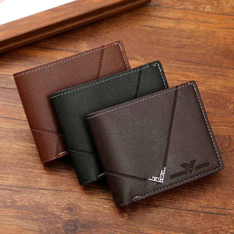 Fashion Men's Short Wallet With Card Slots Money Clip Simple Lychee Pattern Horizontal Wallet
