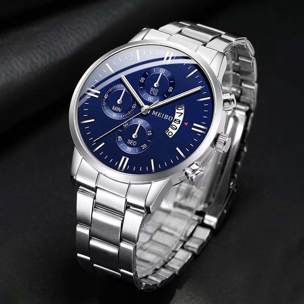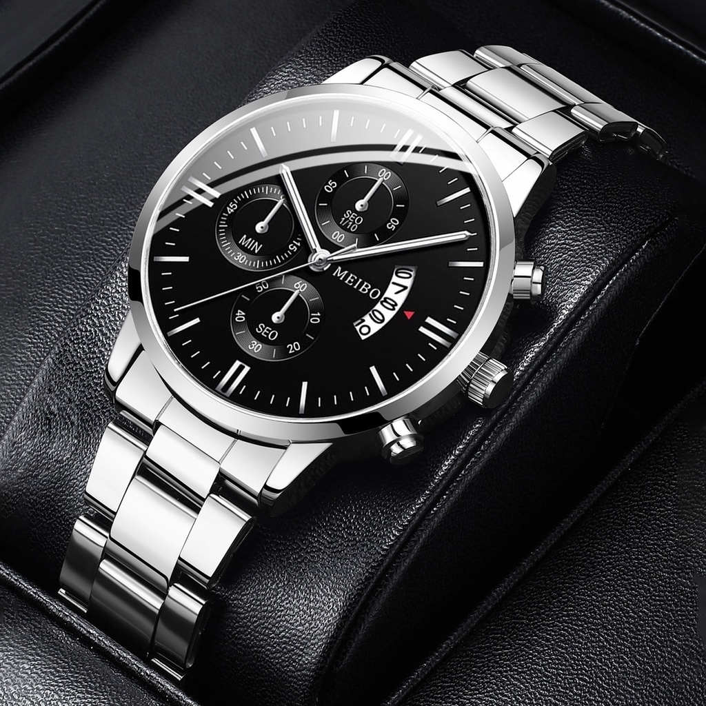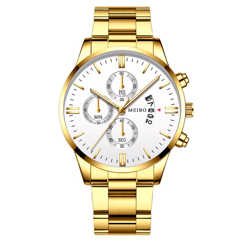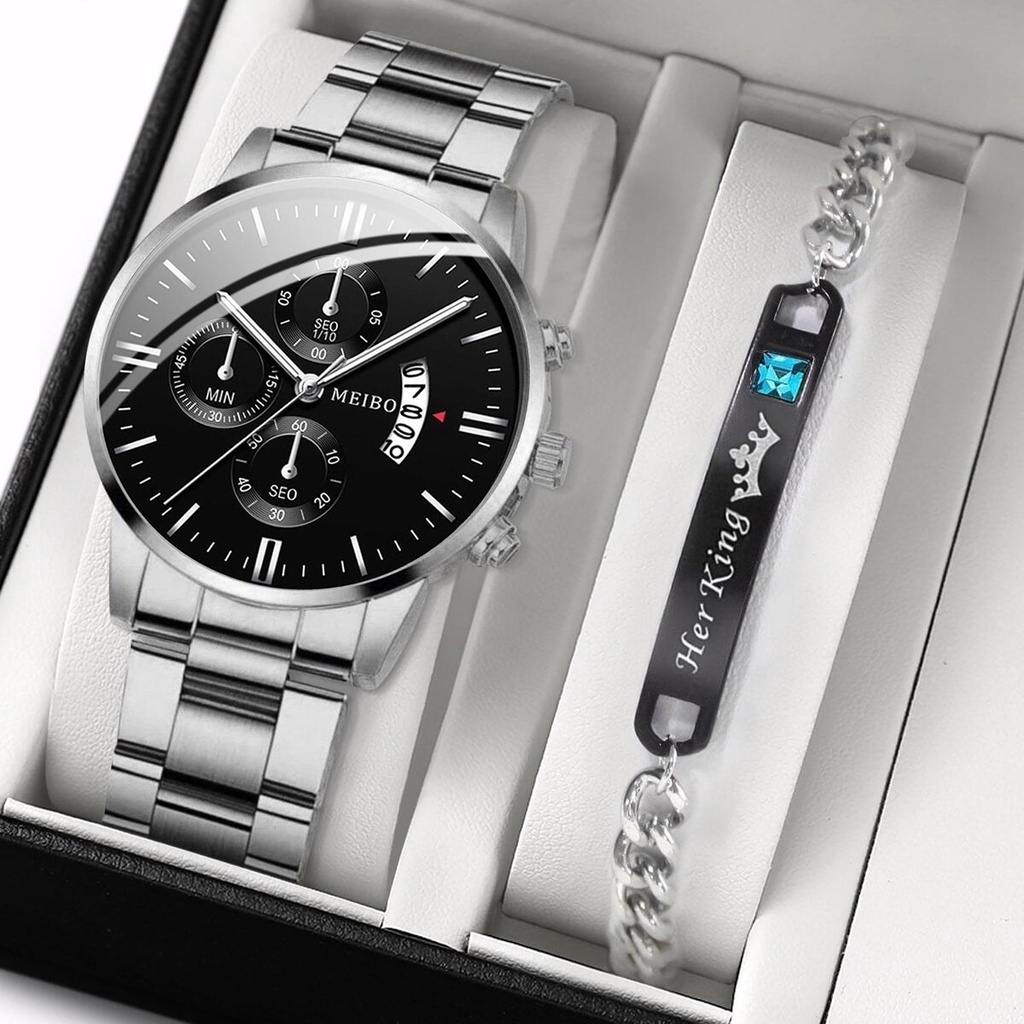 Fashion Men's Watches Bracelet Set Stainless Steel Band Man Silver Gold Quartz Watch Set