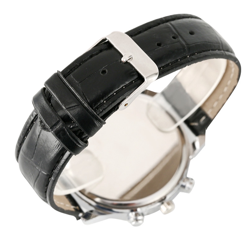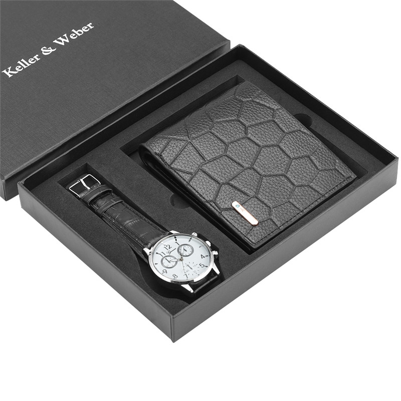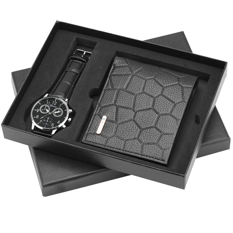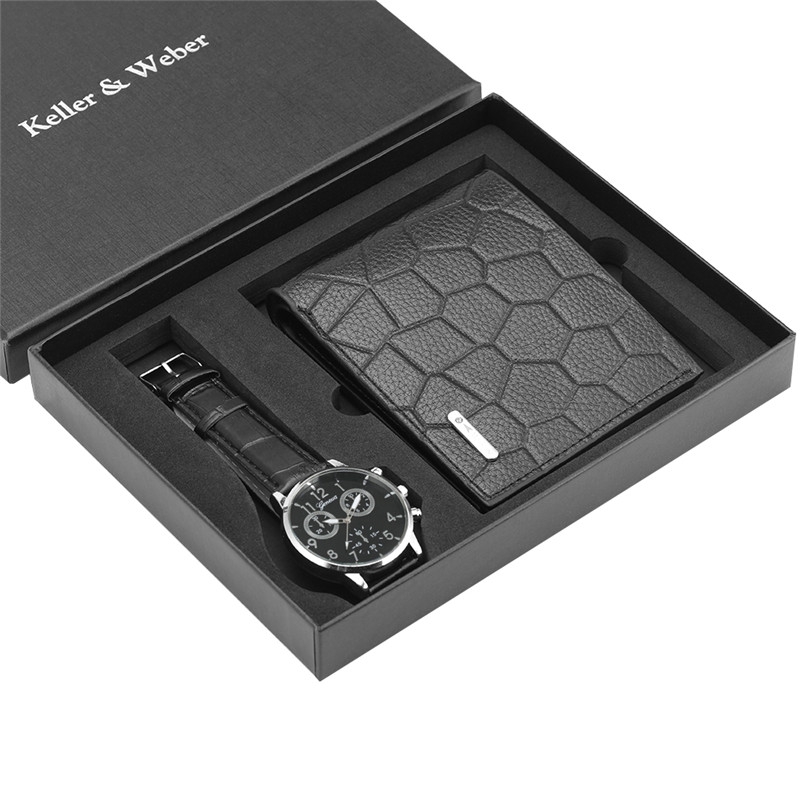 Fashion Men Black Leather Wallet Business Quartz Wristwatch Best Gift Set To Man