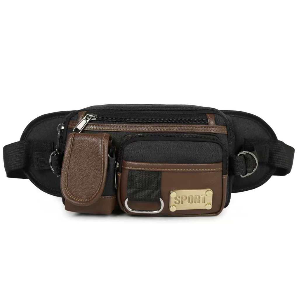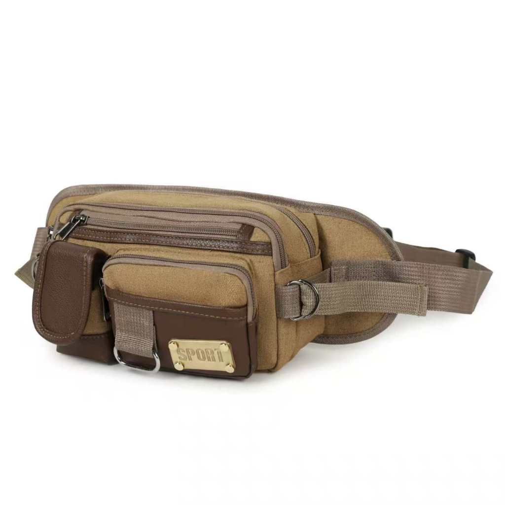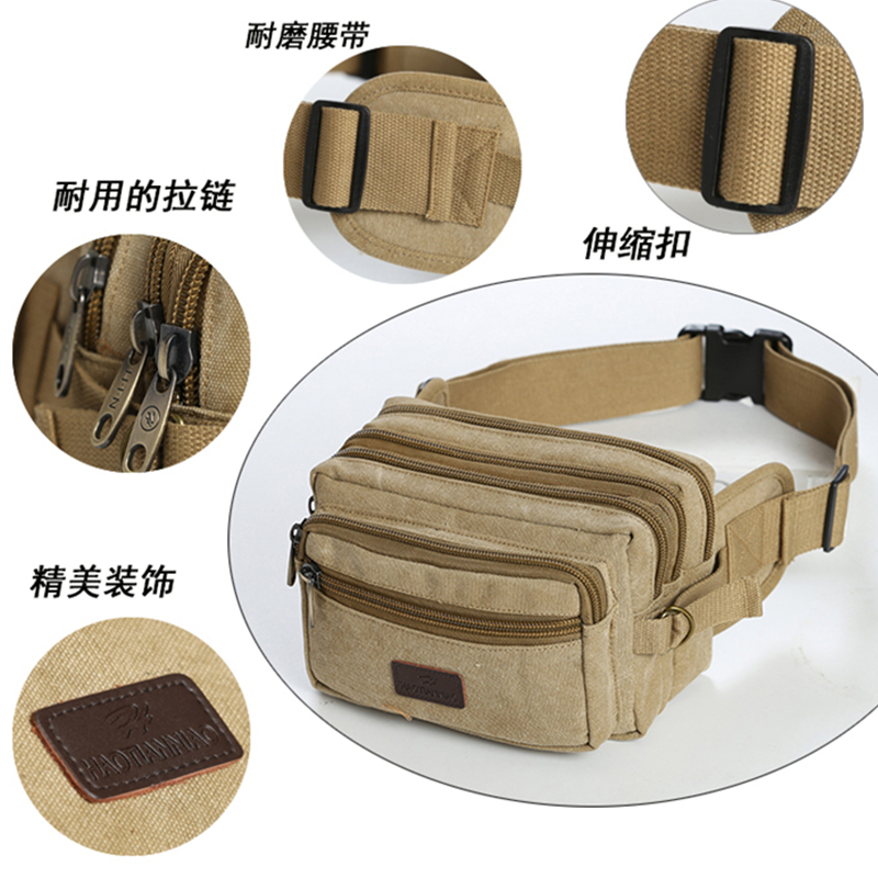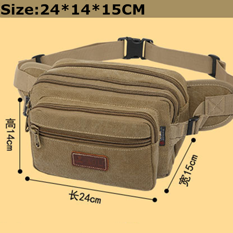 Fashion Mens Belt Bag Canvas 5 Zipper Pockets Waterproof Bags For Men Waist Pack bag 306#