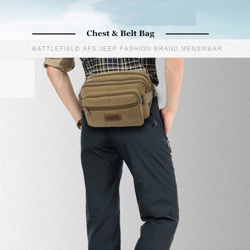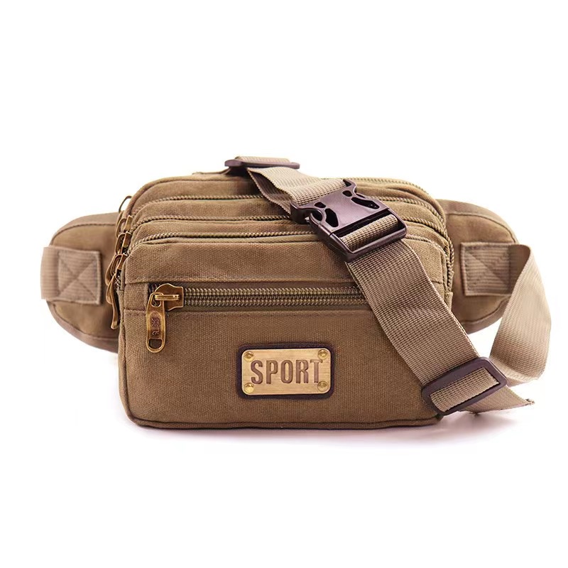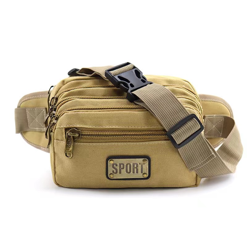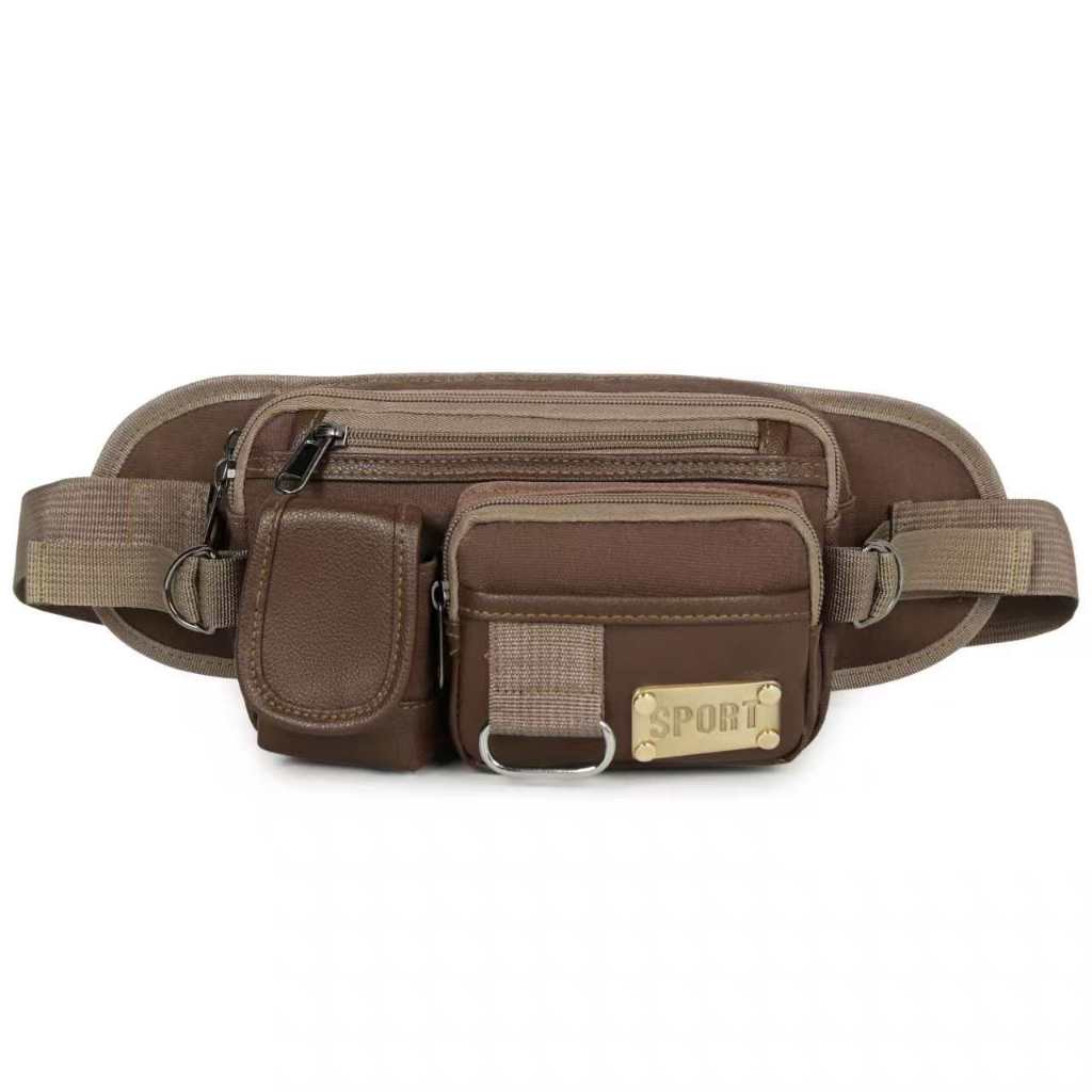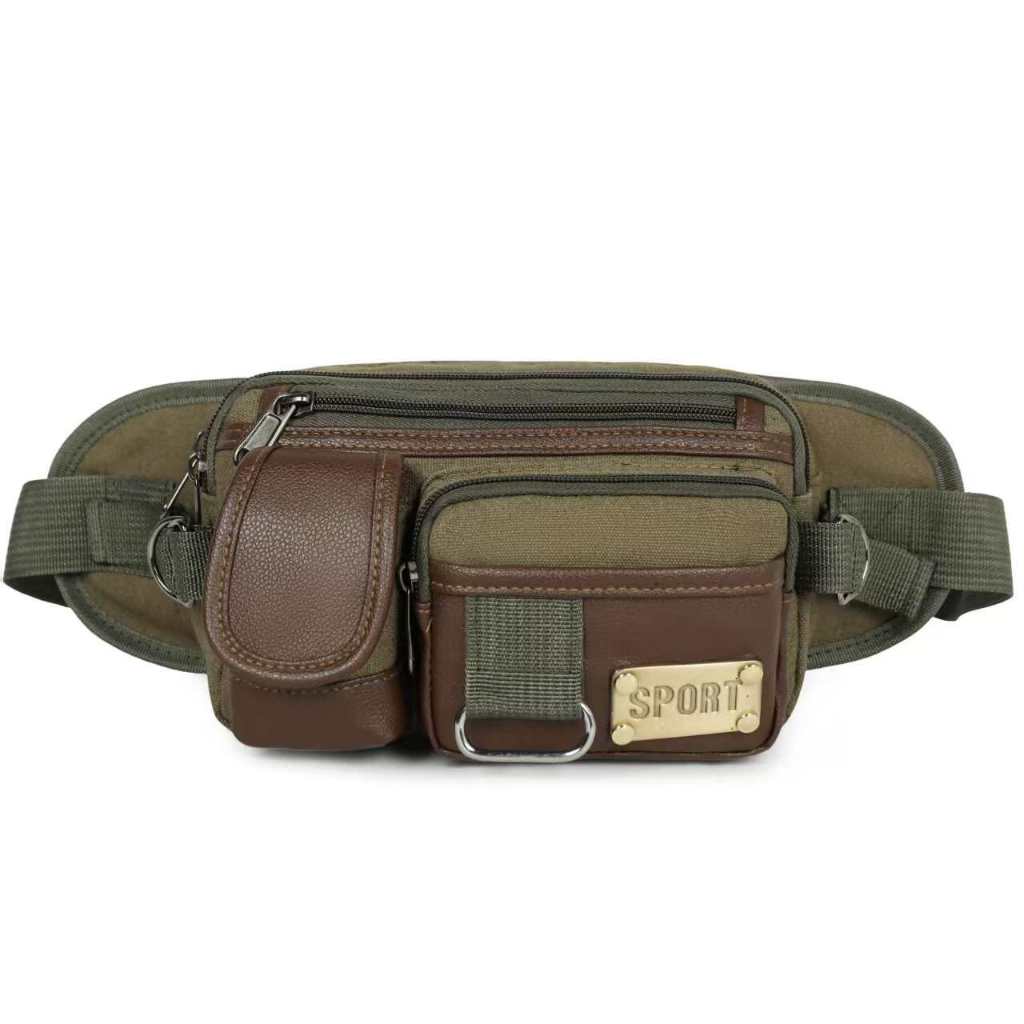 Fashion Mens Belt Bag Canvas 5 Zipper Pockets Waterproof Bags For Men Waist Pack bag 306#