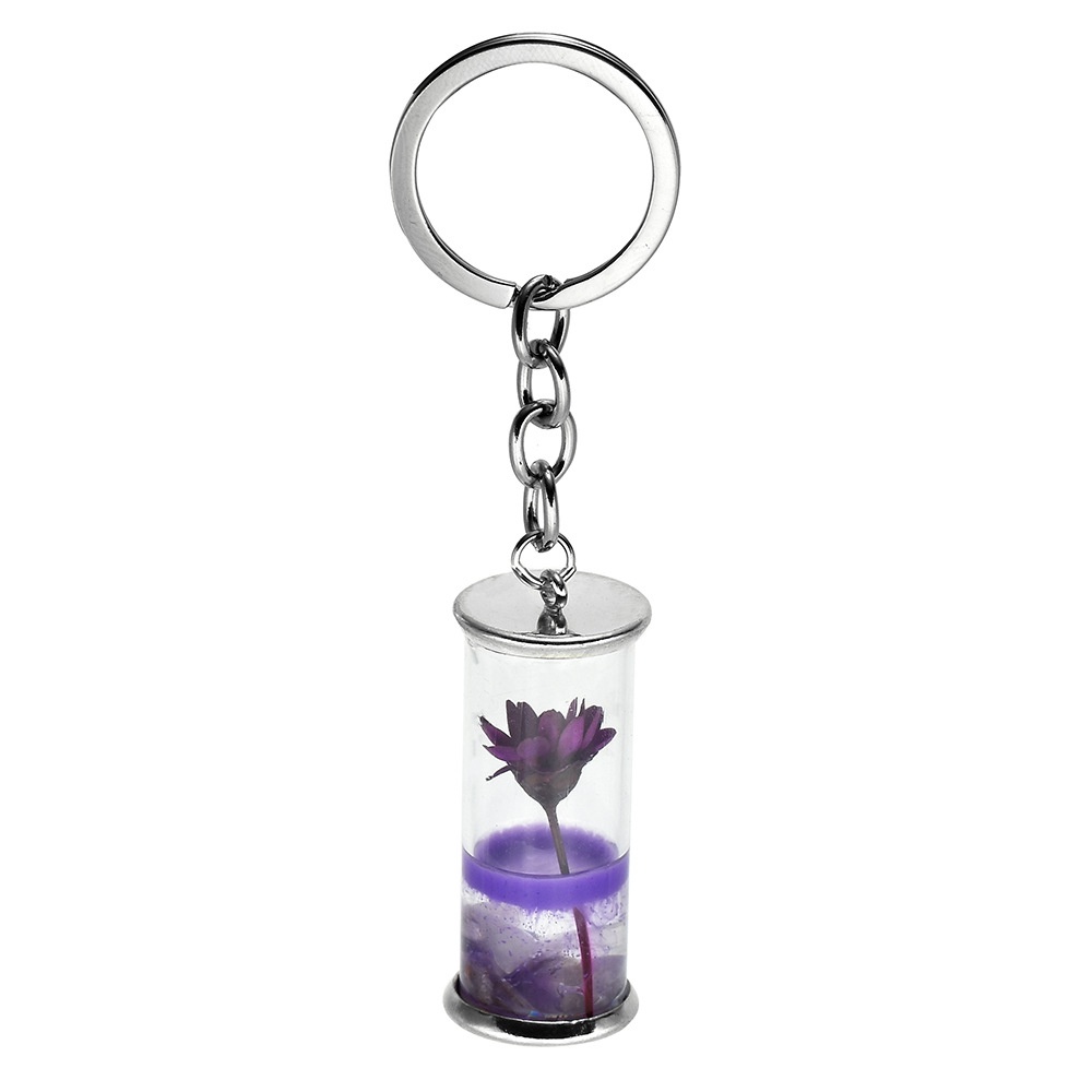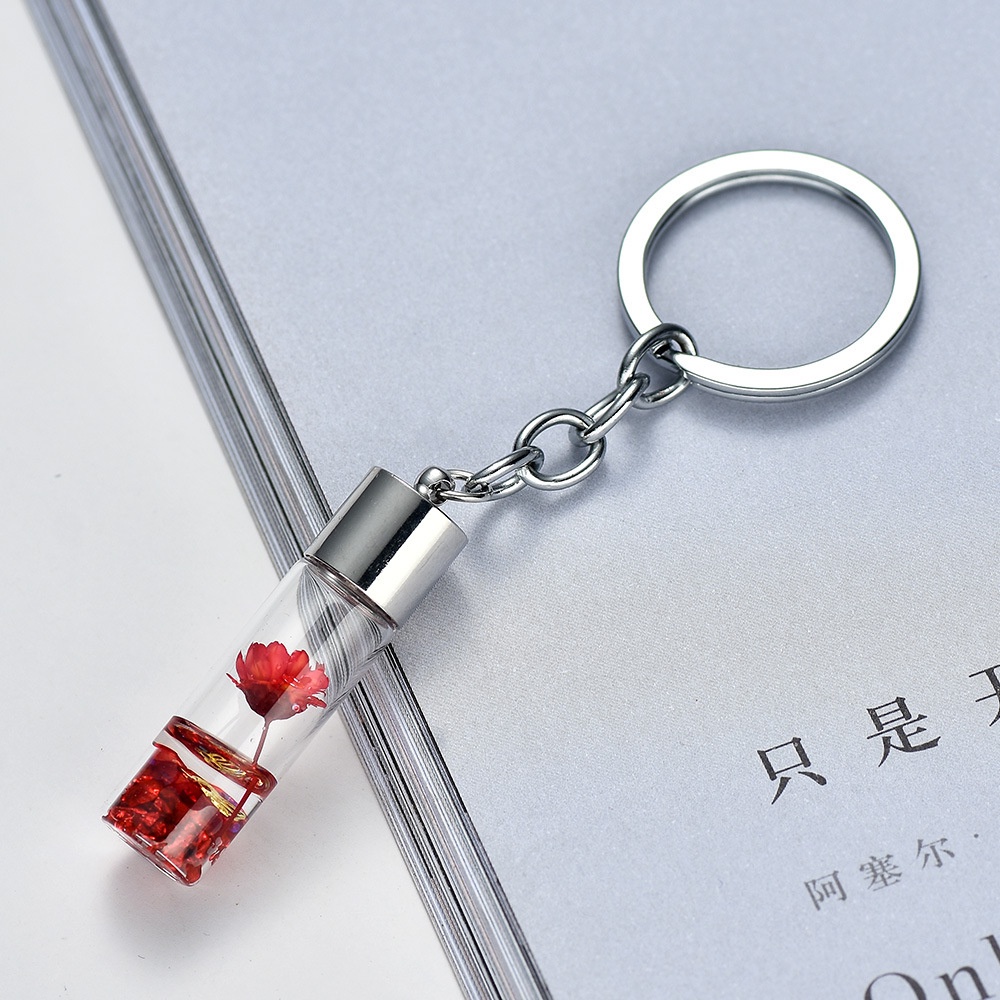 Fashion Natural Eternal Flower Keychain Dried Flower Plants Key Chains Wishing Bottle Keyrings Key Holder Women Bags Accessories