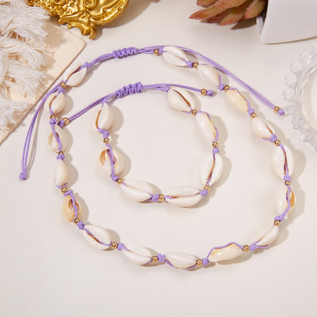 Fashion Natural Shell Conch Braided Rope Bracelet Necklace Handmade Boho Women Beach Jewelry Set Gift