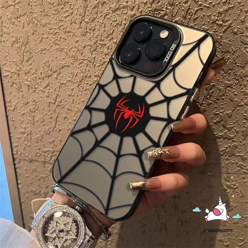 Plating Metal Cool Creative Spider Man Phone Case Compatible for IPhone 17 11 15 Por Max 16 14 11 12 13 15 Pro Max Air XR XS Max X Trend Brand Cartoon Spider-Man Soft Silicone Case