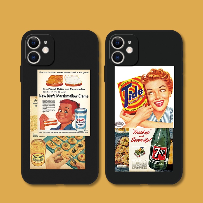 Fashion Retro Poster for IPhone 11 13 Pro Max Xr Xs Max 6s 7 8 Plus 12 mini 14 15 Pro Max se2 Tpu Cover Soft Black Case Couple