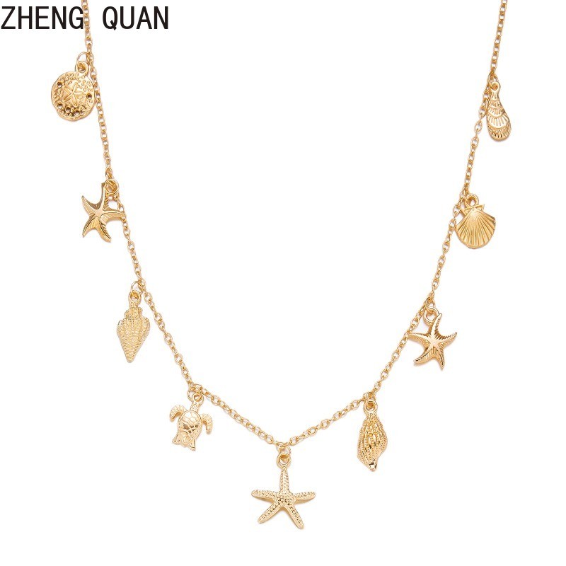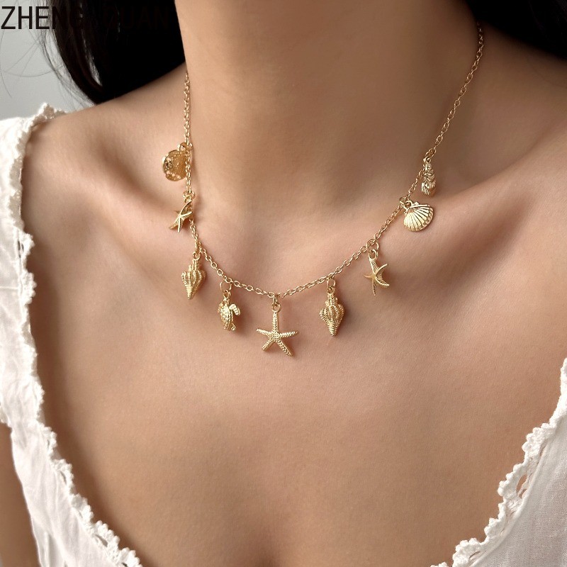 Fashion Retro Starfish Conch Shell Necklace 18K Gold Plated Necklaces For Women Beach Jewelry Vintage Holiday Gifts Bohemian