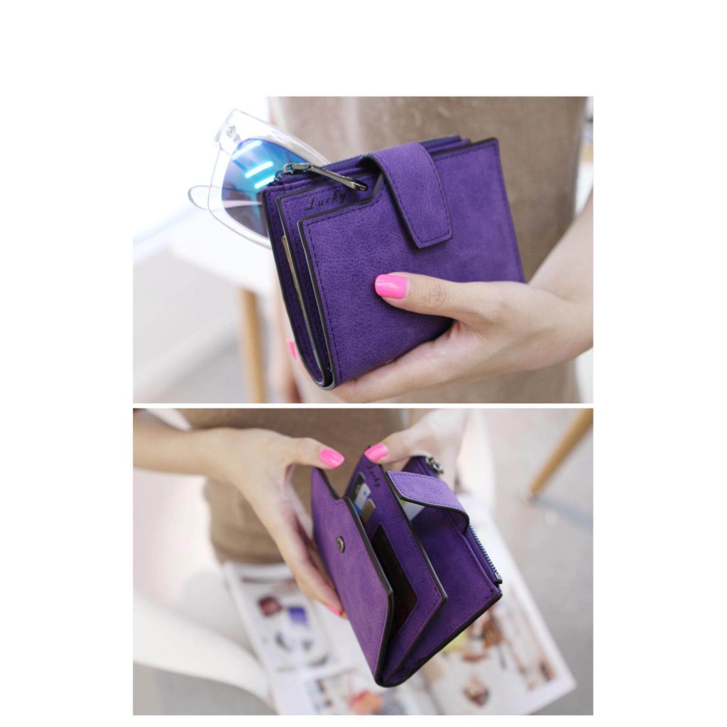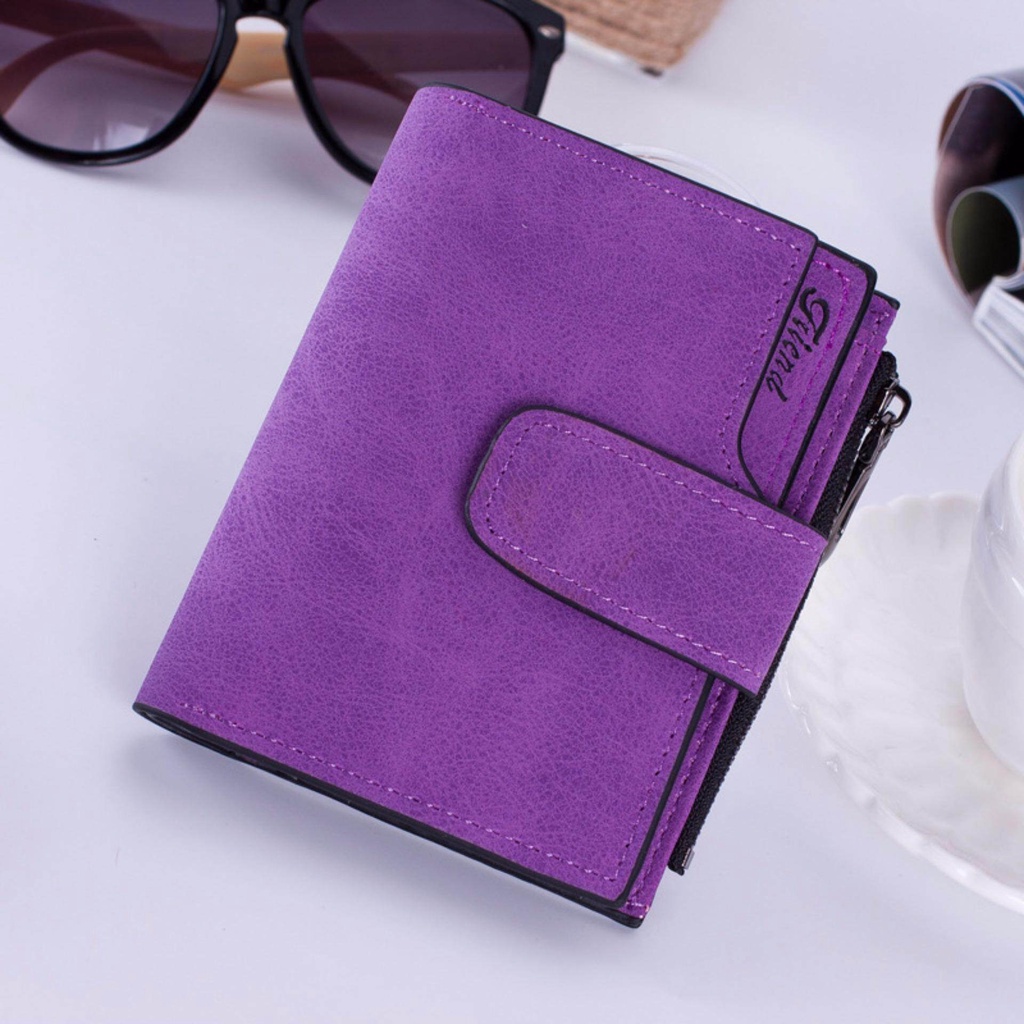 Fashion Retro Women Short Wallet Coin Purse Organizer Pocket Small Credit Card Holder Money Purse Bag Purple