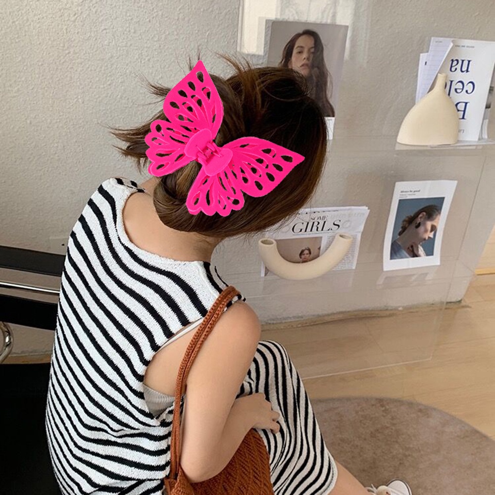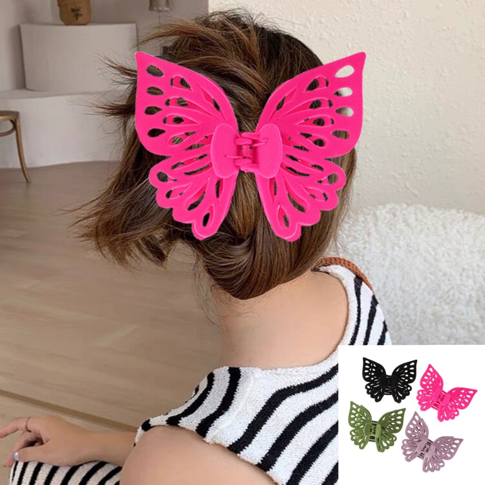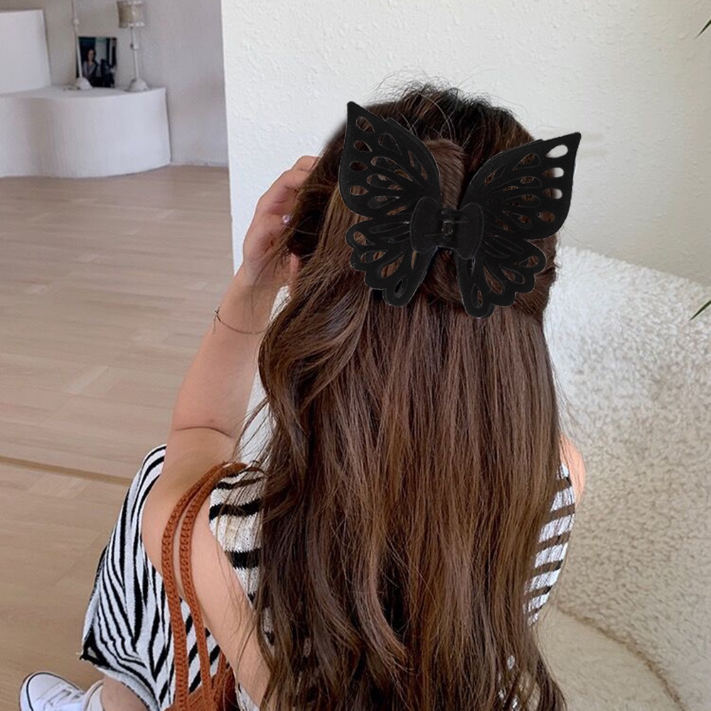 Fashion Simple Hair Clip 14cm Plastic Flocking Hollow Butterfly Hair Grab Hairpin for Women Girls Hair Accessories Ponytail