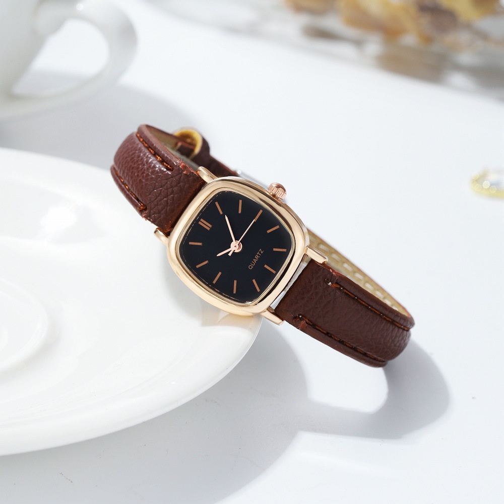 Square Face Women Quartz Watch Black Brown Leather Band Small Dial Timepiece For Everyday Wear Winter Commute Valentine's Day 2026 Gift