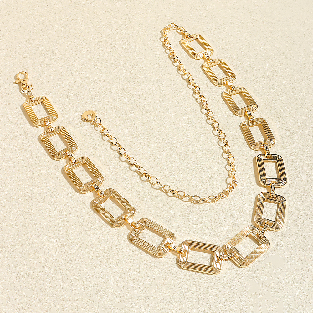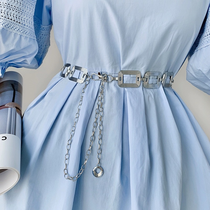 Fashion Square Metal Waist Chain Belt Women's Gold Silver Waistband Hip Hop Style Waist Belts Dress Accessories