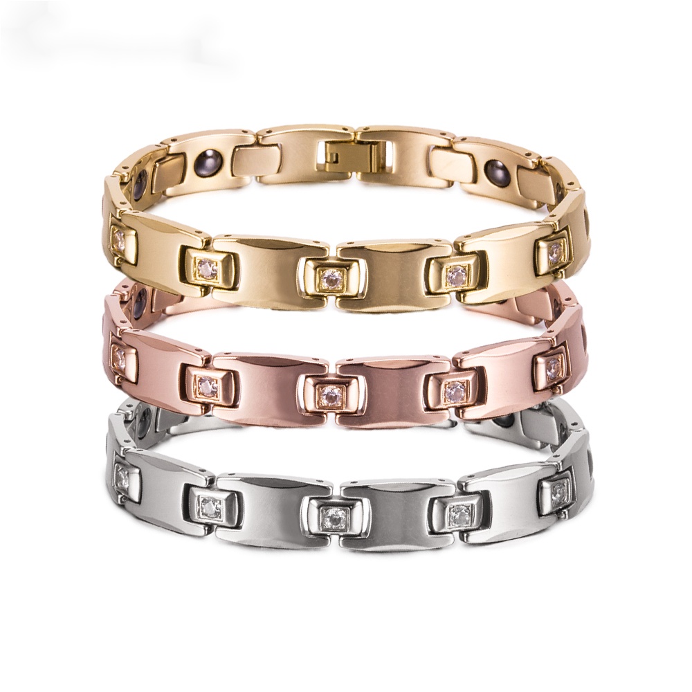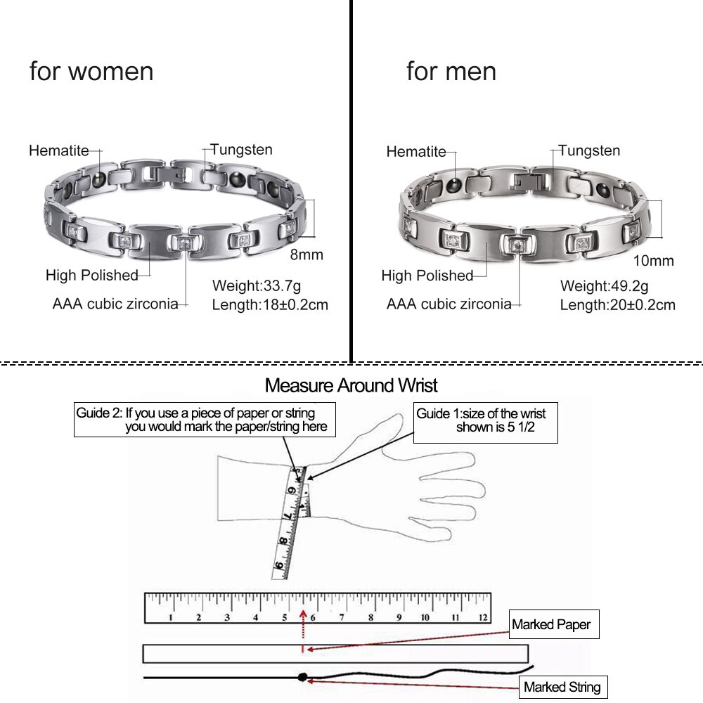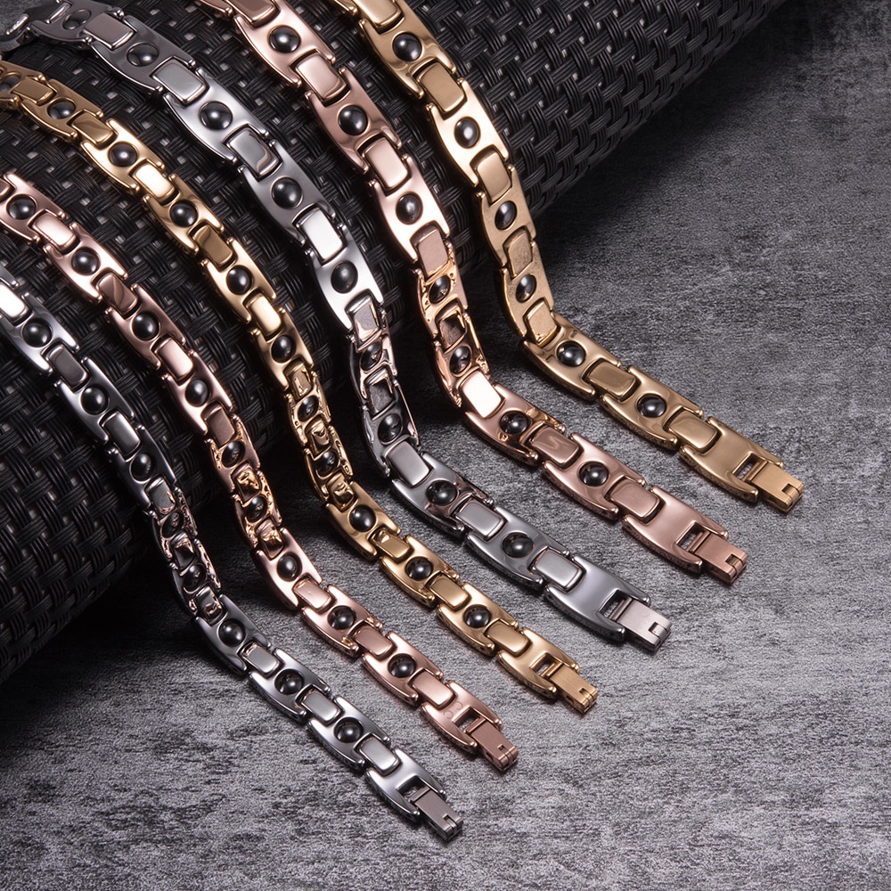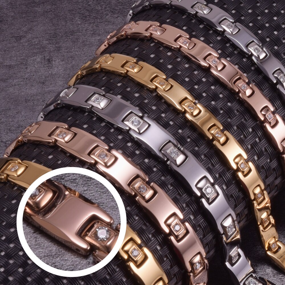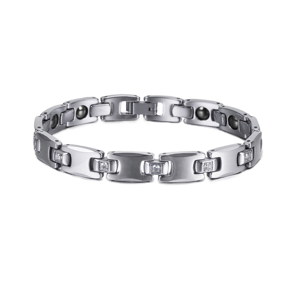 Fashion Tungsten Bracelet Cubic Zircone Health Energy Jewelry Couple Lovers Hematite Chain Tungsten Bracelet for Men Women