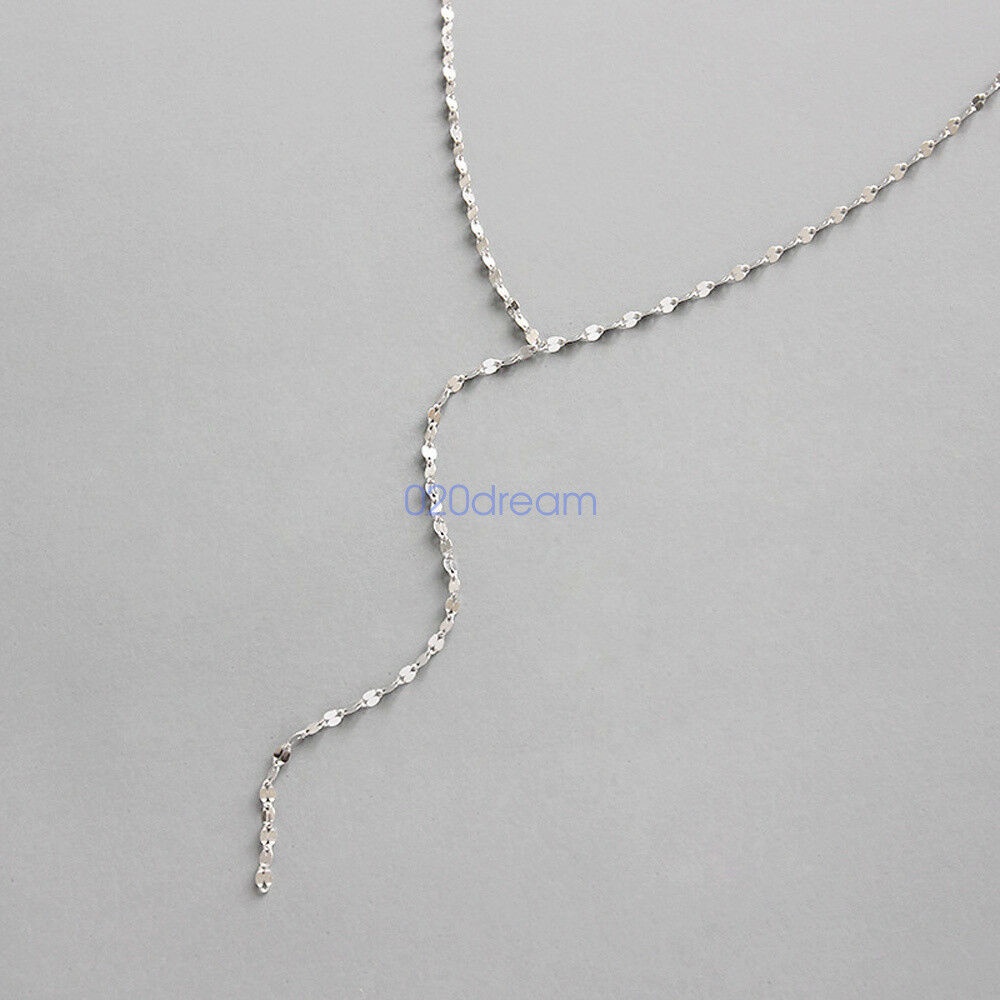 Fashion Women 925 Sterling Silver Adjustable Chain Sweater Chain Pendant Long Necklace Thick chain fashion Jewelry Gift