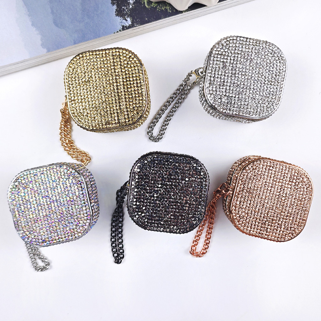 Fashion color diamond with chain Case for Samsung Galaxy Buds FE/Buds 2 pro/Buds 2/Buds Live/Buds pro Design Headphone Cover with ring