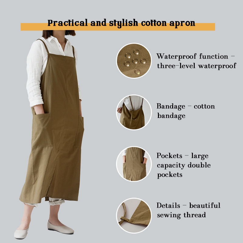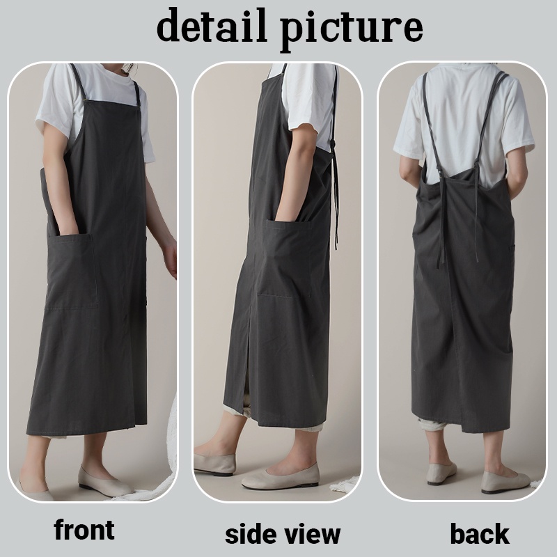 Fashion cotton apron Coffee shop owner apron Haircut work apron Japanese housewife style kitchen cooking minimalist style cute apron oil and stain-proof apron Korean men's apron