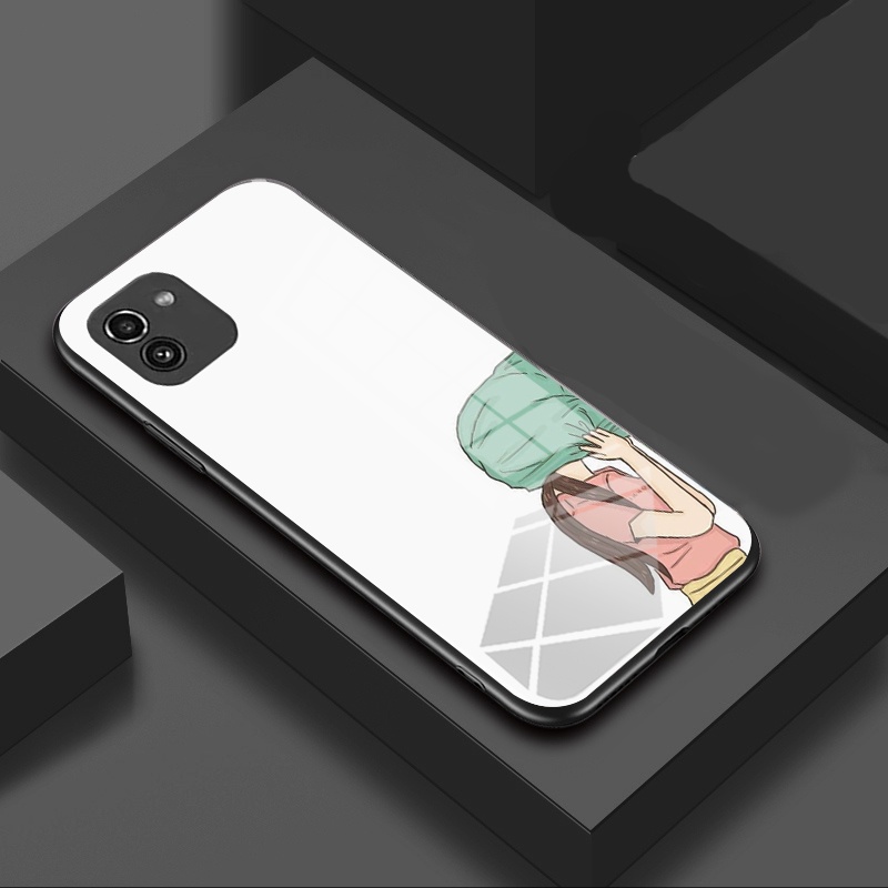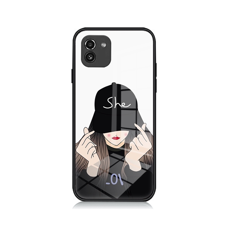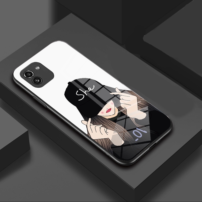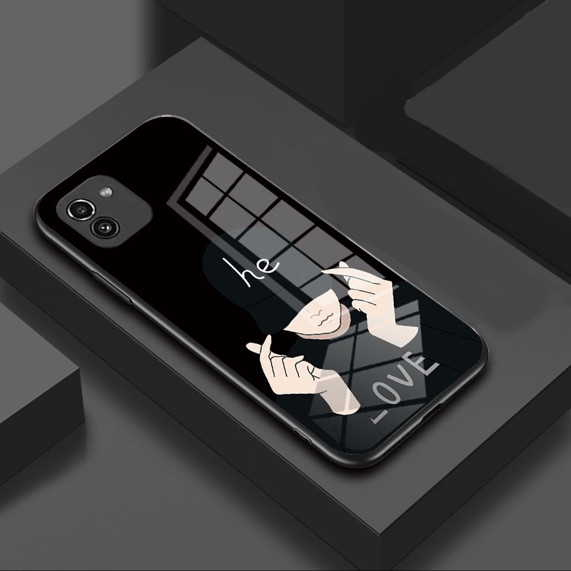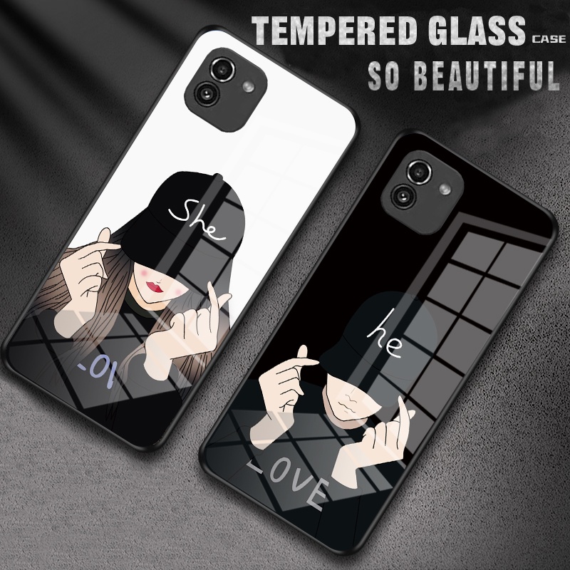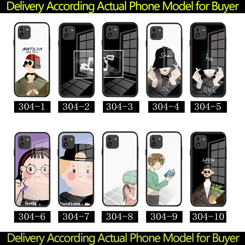 Fashion couple cute Samsung Galaxy A03 4G A035 Phone Case Casing Hard Glass Shockproof Cover 304