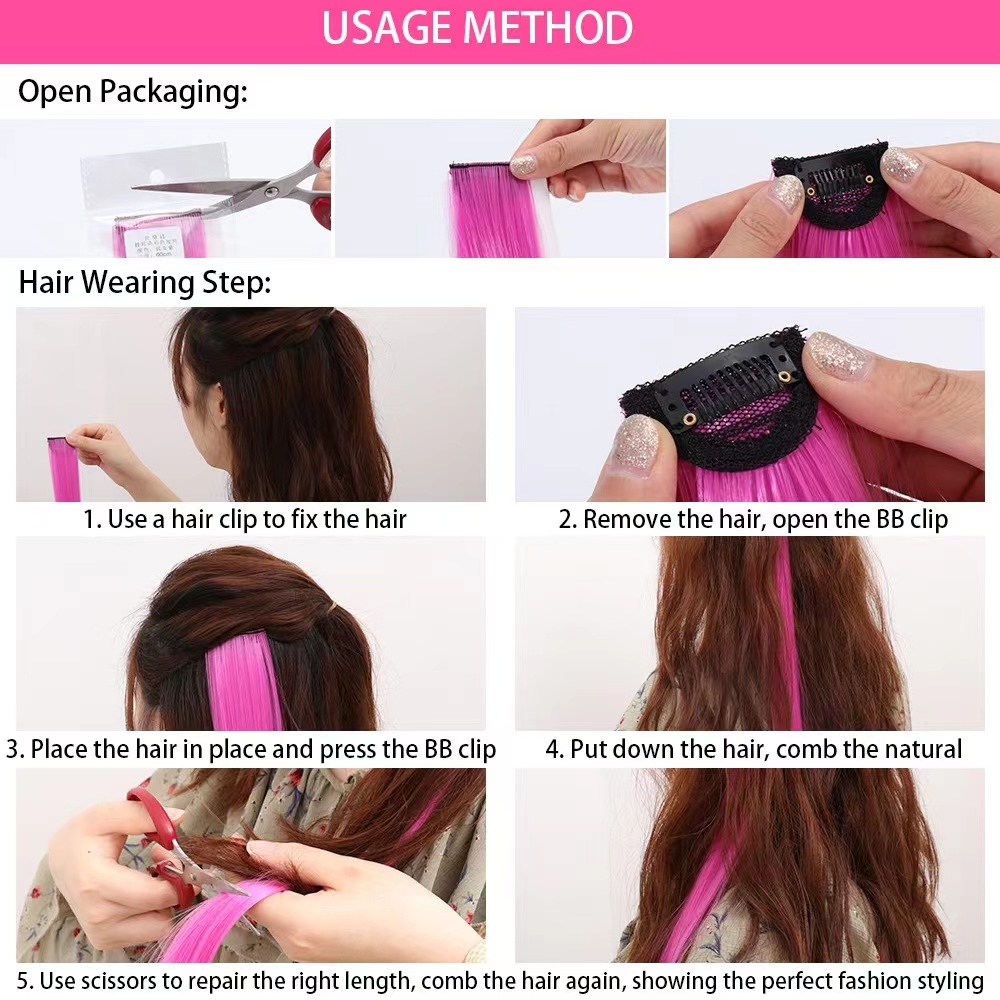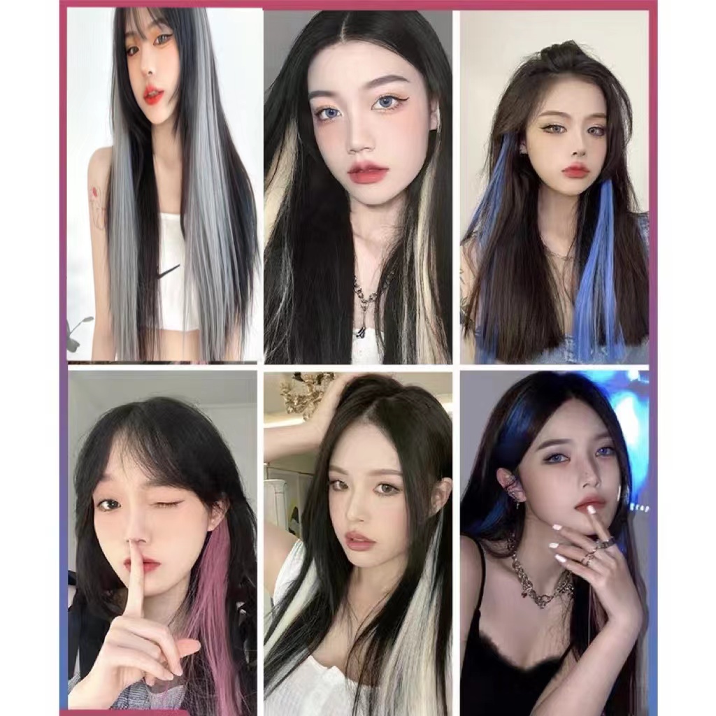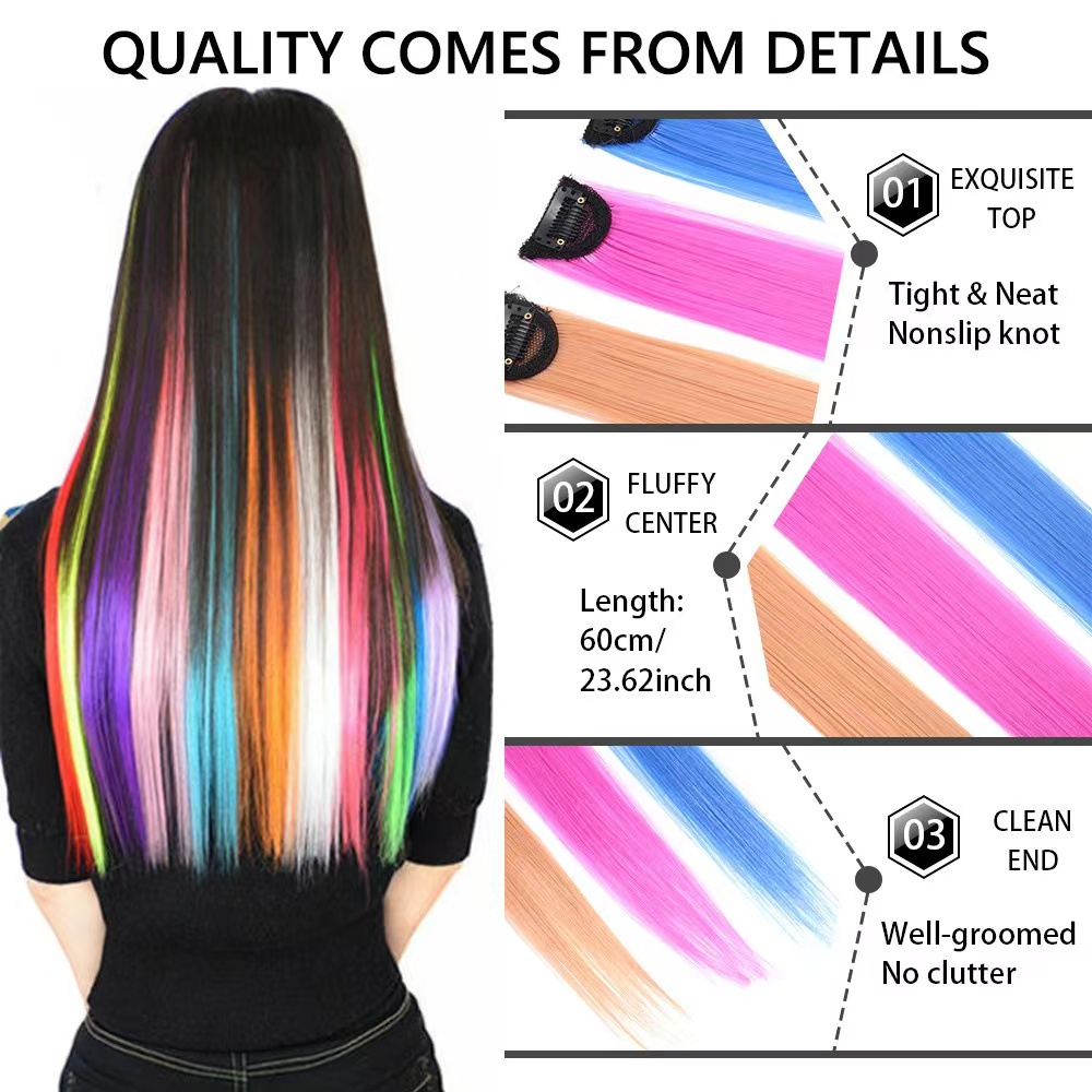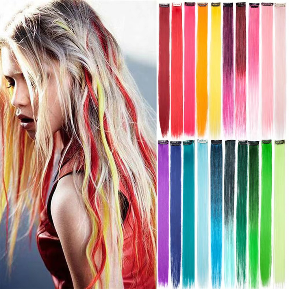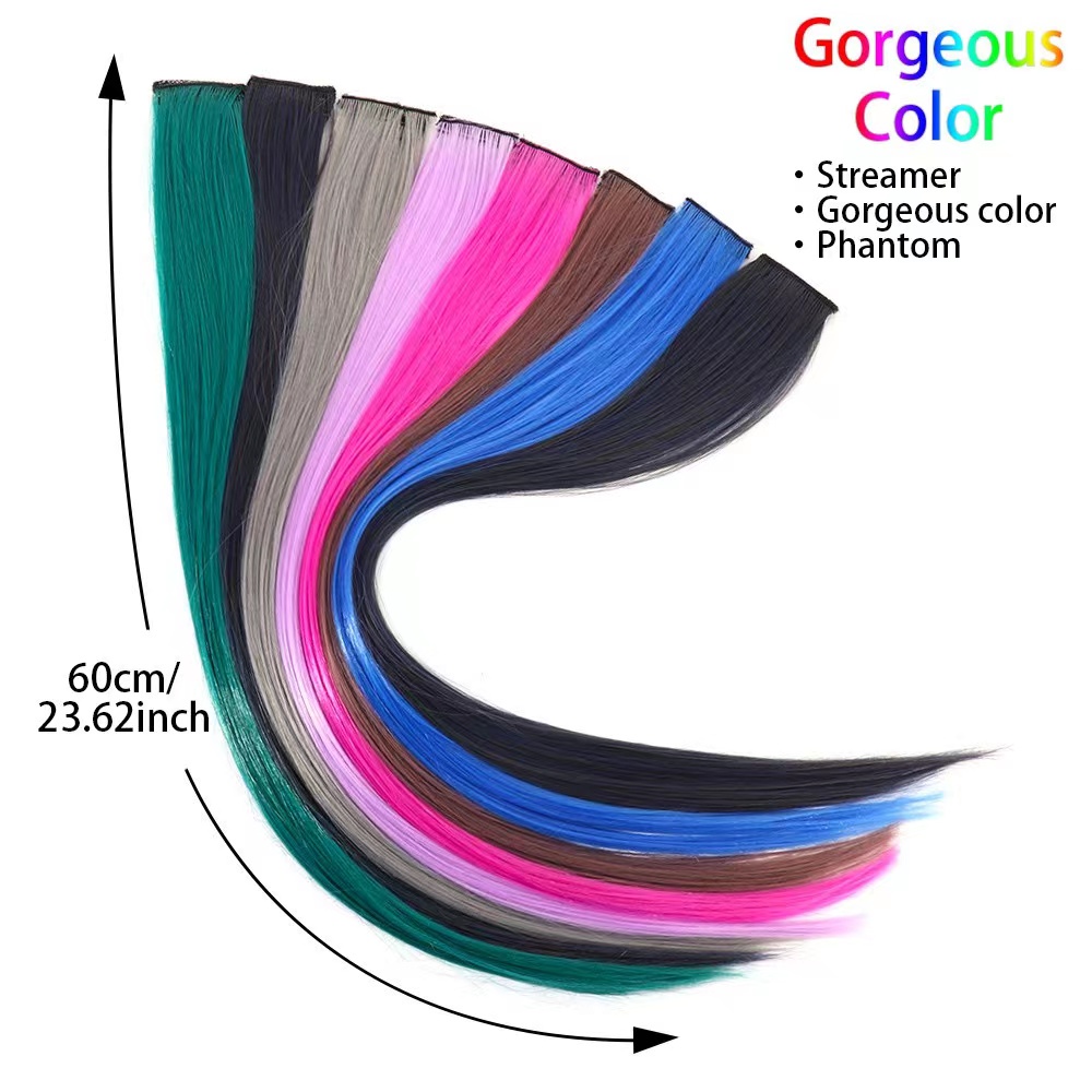 Fashion girl colorful seamless wig piece long straight hair with clip color hair extension piece HD4