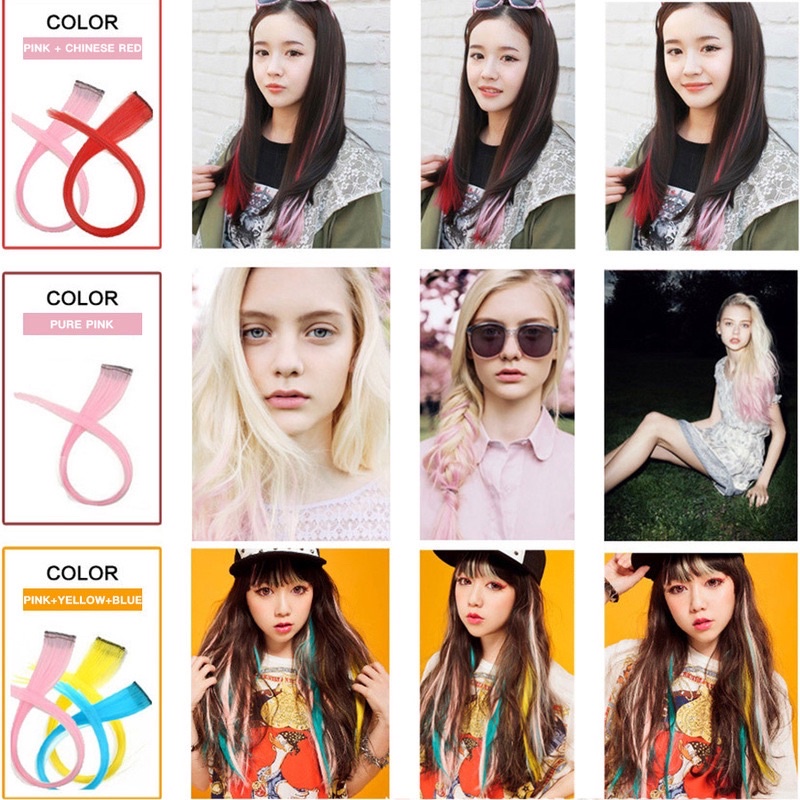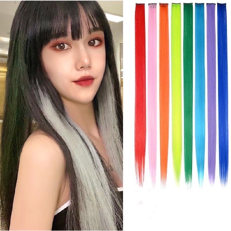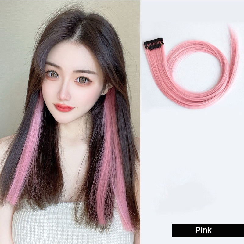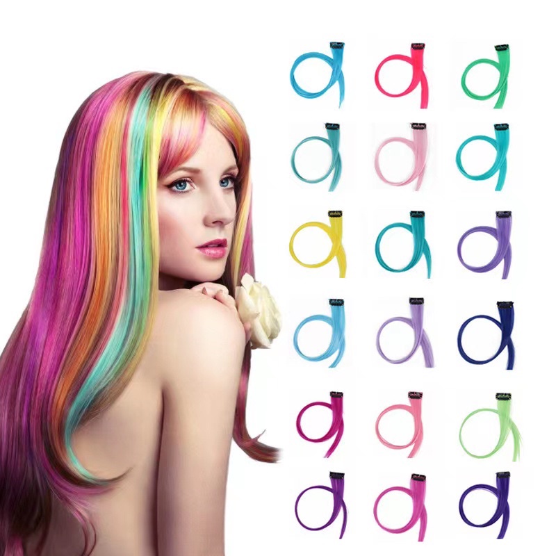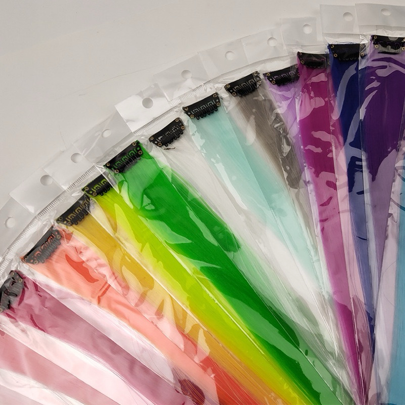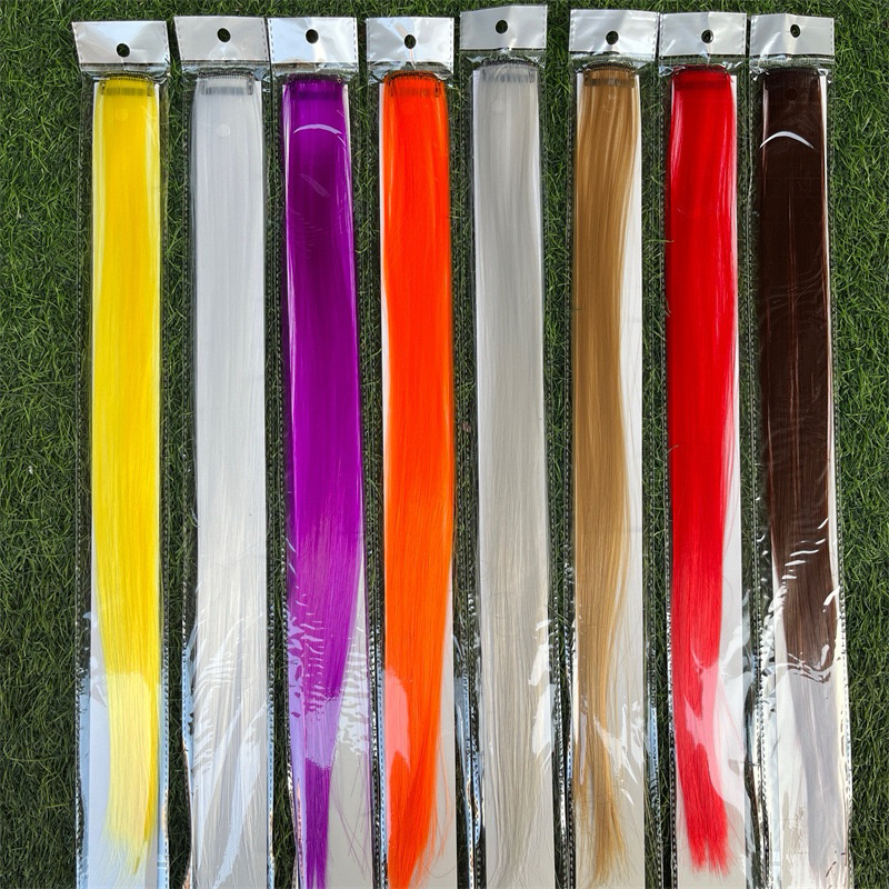 Fashion girl colorful seamless wig piece long straight hair with clip color hair extension piece